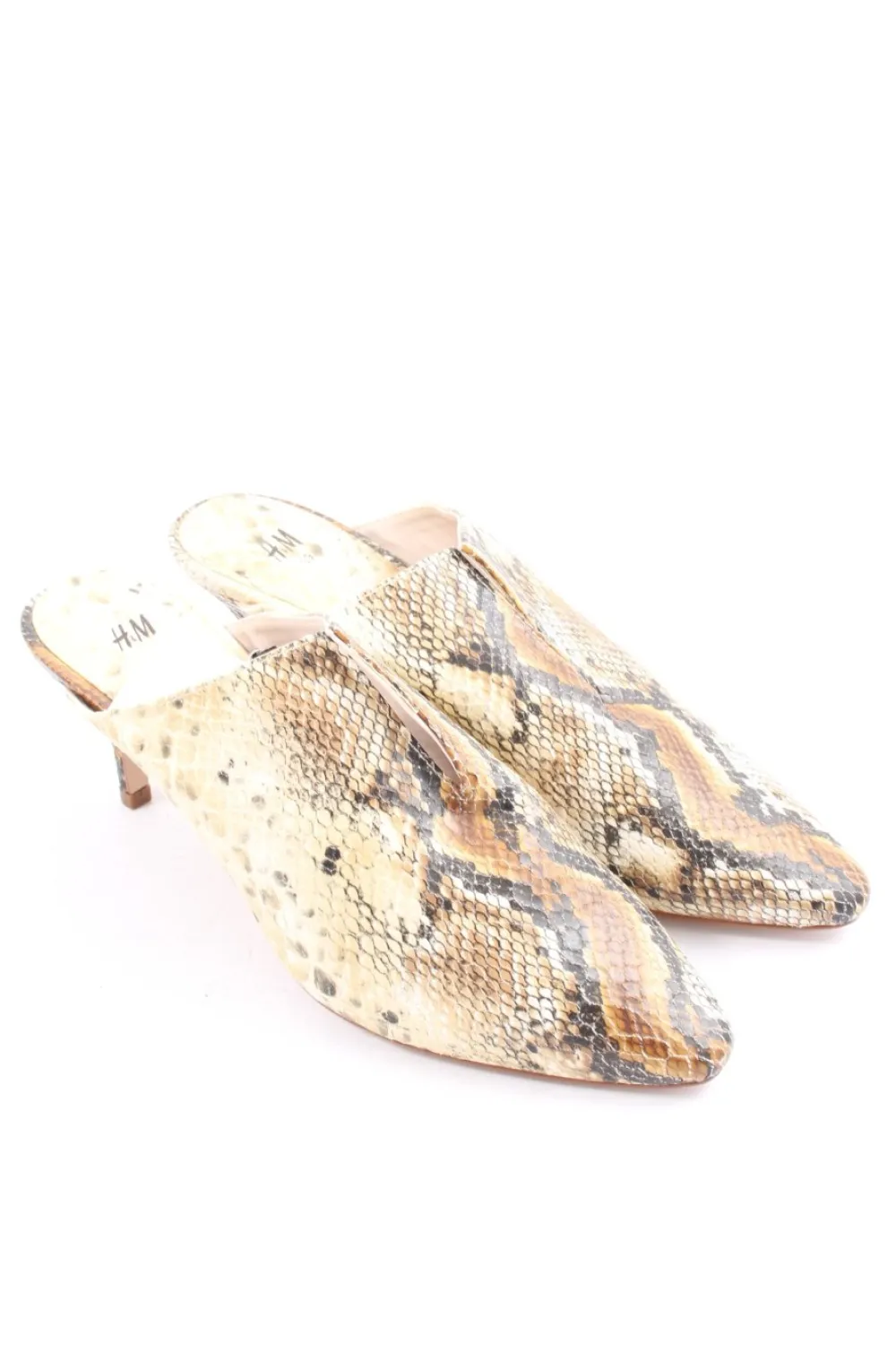 - H&M Absatz Pantoletten, wollweiß-braun Animalmuster