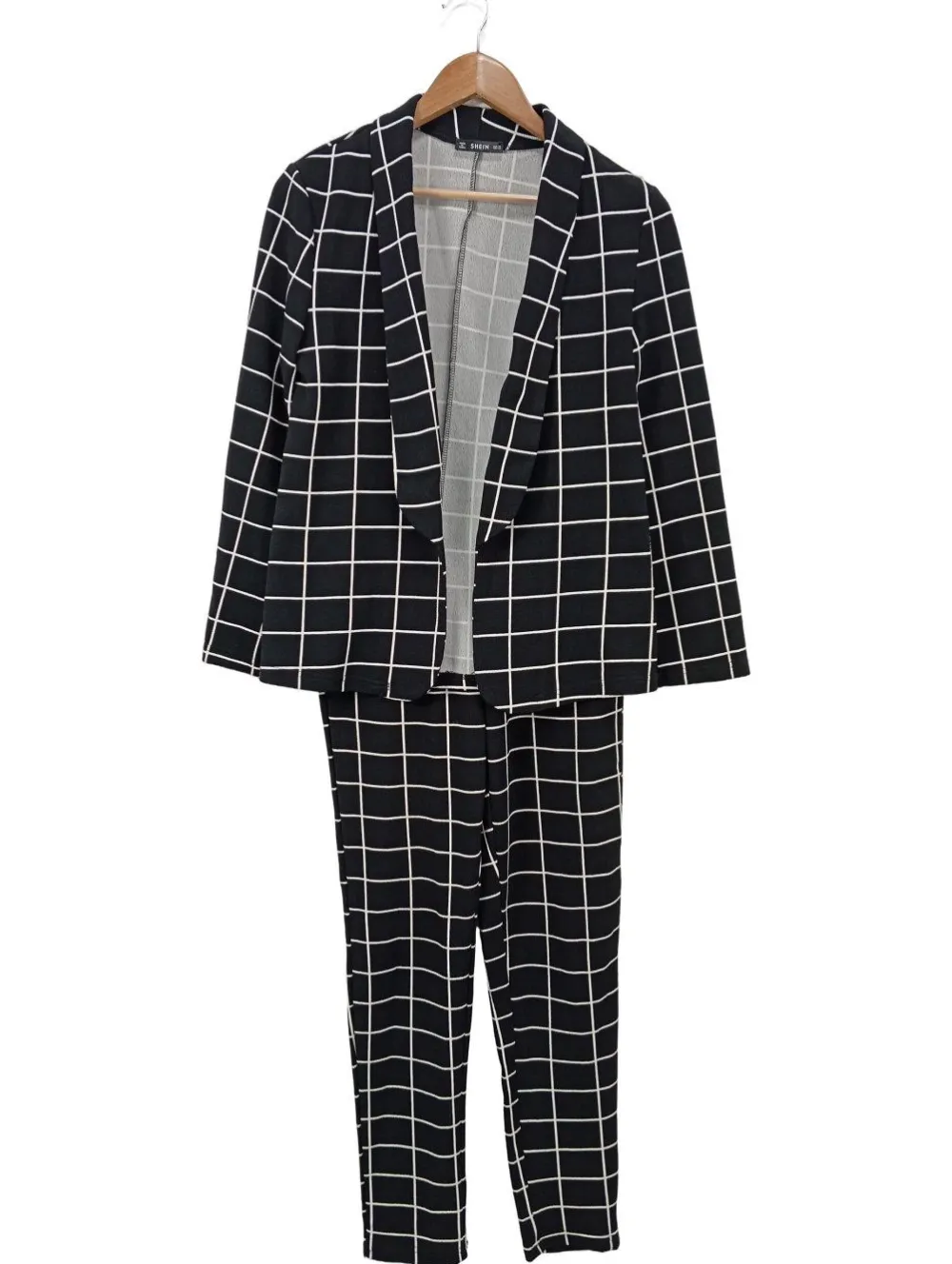 - SheIn Hosenanzug, schwarz-weiß Karomuster
