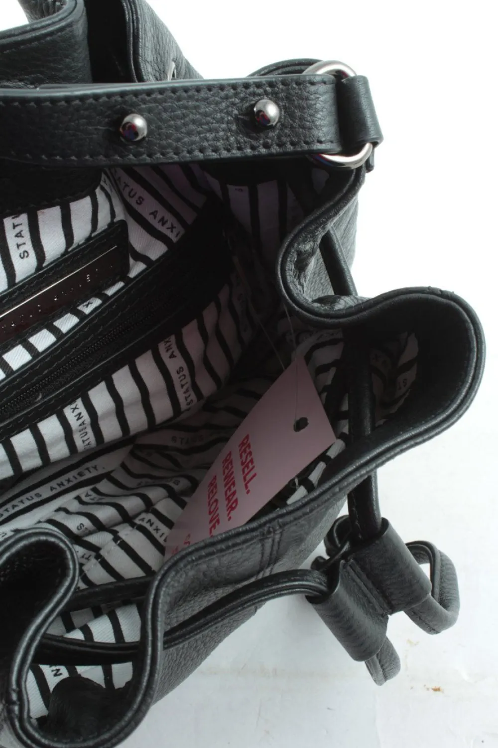 - Details: Schulterriemen, Metallelemente, Ösenelemente, gemustertes Futter, Logo-Applikation innen aus Metall, Reißverschlussinnenfach, verschließbares Innenfach