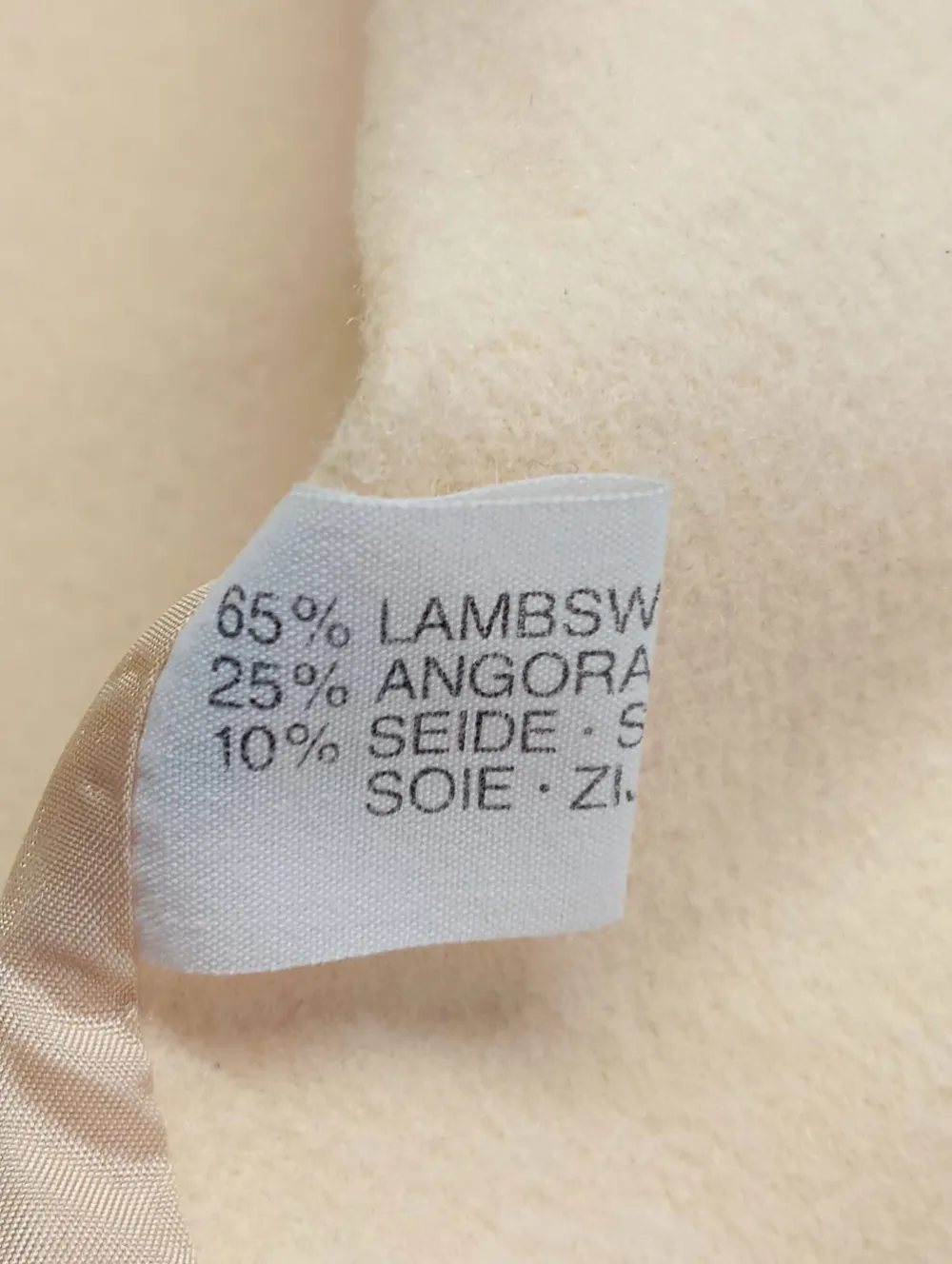 - Außenmaterial: 65% Wolle, 25% Angora/Wolle/Tierhaar, 10% Seide