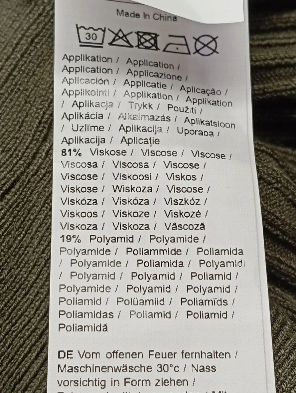 - Außenmaterial: 81% Viskose, 19% Polyamid