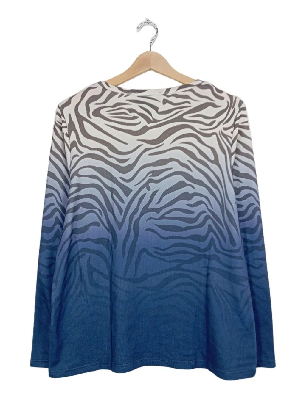 - Rundhalsausschnitt, Bund am Ärmelsaum, Allover-Druck, Farbverlauf, Casual-Look, schlichter Stil