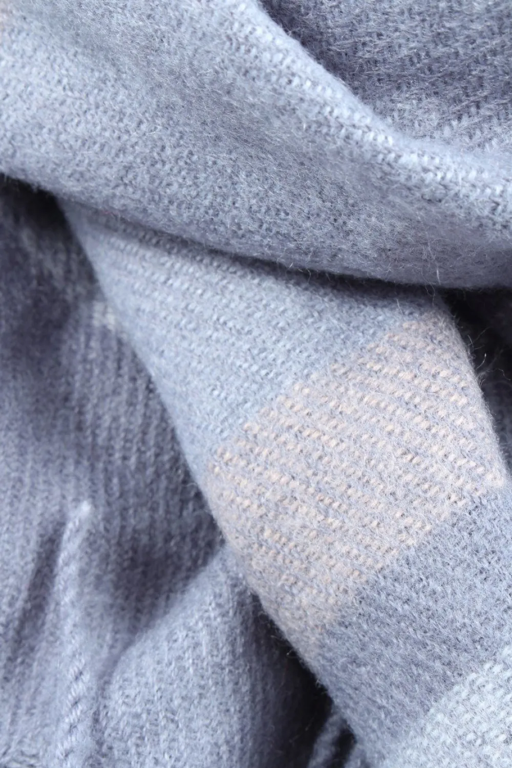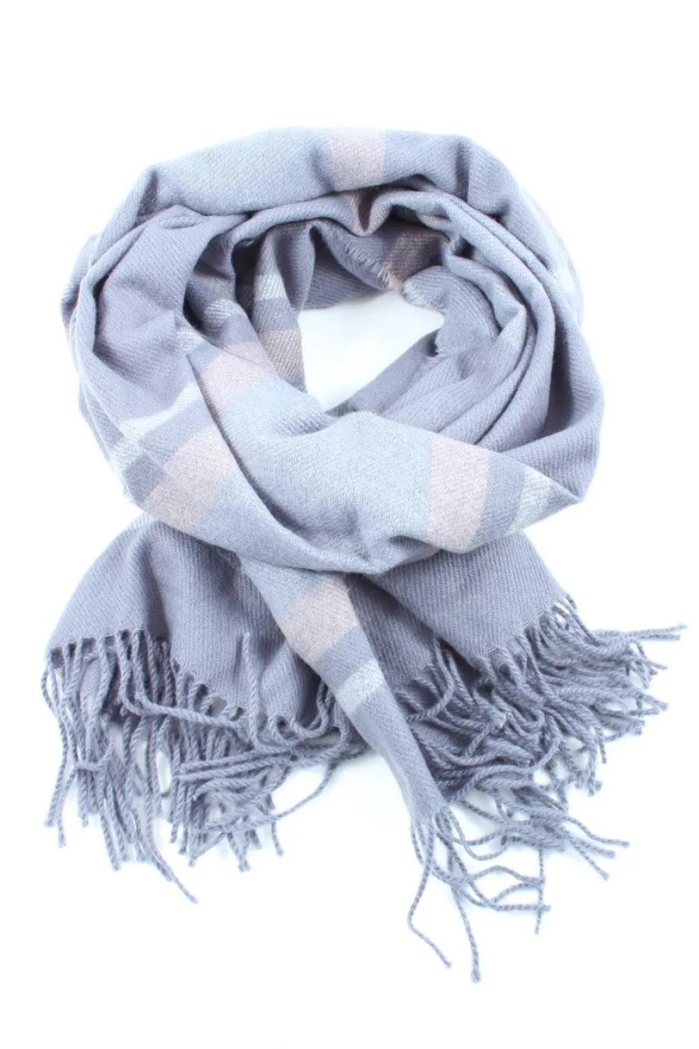 - H&M Fransenschal, hellgrau Karomuster