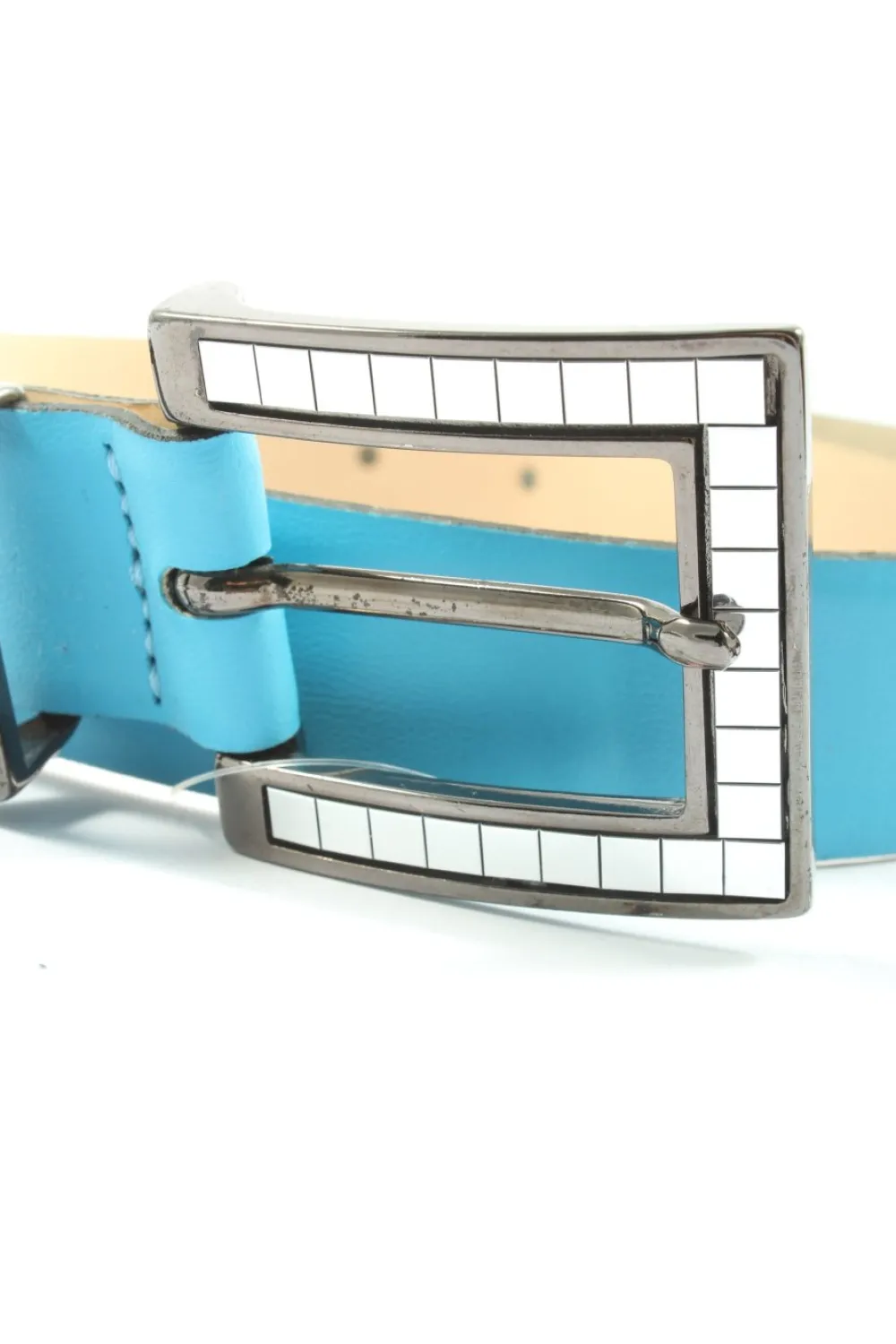 - Lederimitatgürtel, blau-creme
