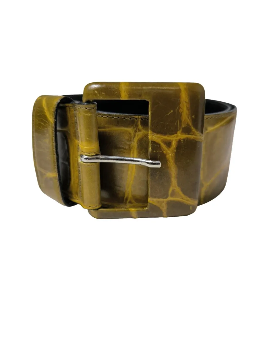 - Claudio Orciani Ledergürtel, blassgelb-schwarz Animalmuster