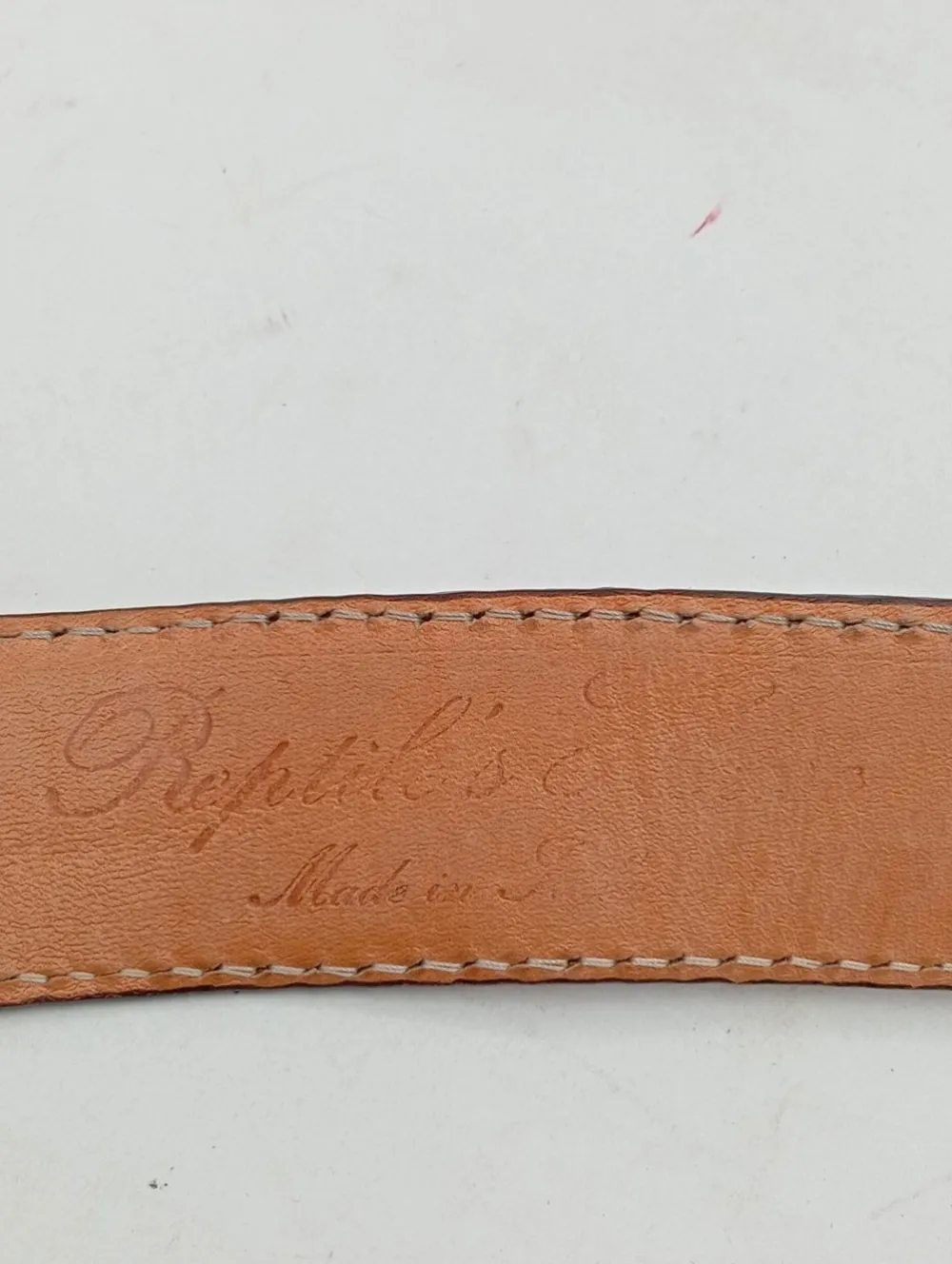 - Maße: Gesamtlänge 106 cm, Breite 4 cm, Schnallenbreite 8 cm, Schnallenhöhe 5 cm