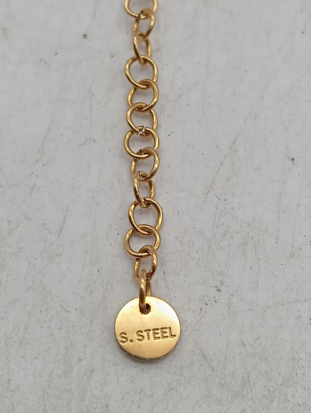 - Details: goldfarbiges Material, Ankerkettenglieder, grobgliedrige Kette, kleine Anhänger, längenverstellbare Kette, mehrgliedrige Kette