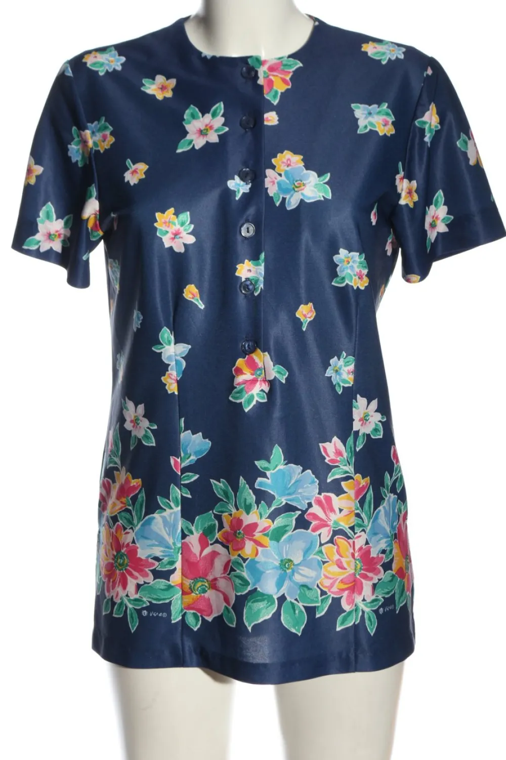 - Rundhalsausschnitt, Bund am Ärmelsaum, Knopfverschluss, Allover-Druck, Blumenmuster, Casual-Look, Elegant, Glanz-Optik, klassischer Stil