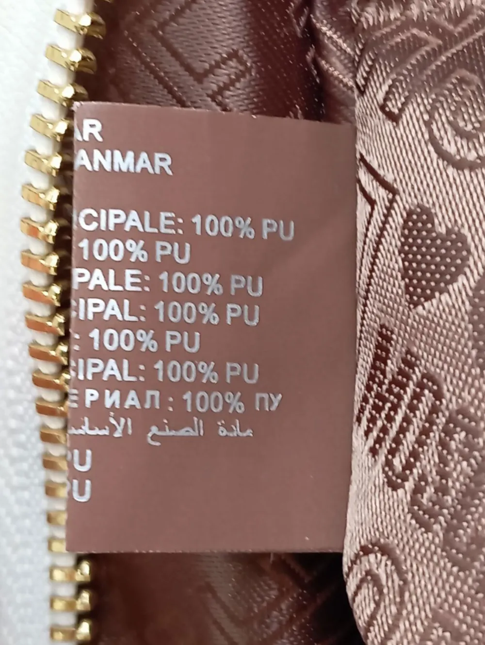 - Details: goldfarbene Hardware, Schulterriemen, Logo-Applikation aus Metall, Metallelemente, Nietenelemente, Steppungen, Ösenelemente