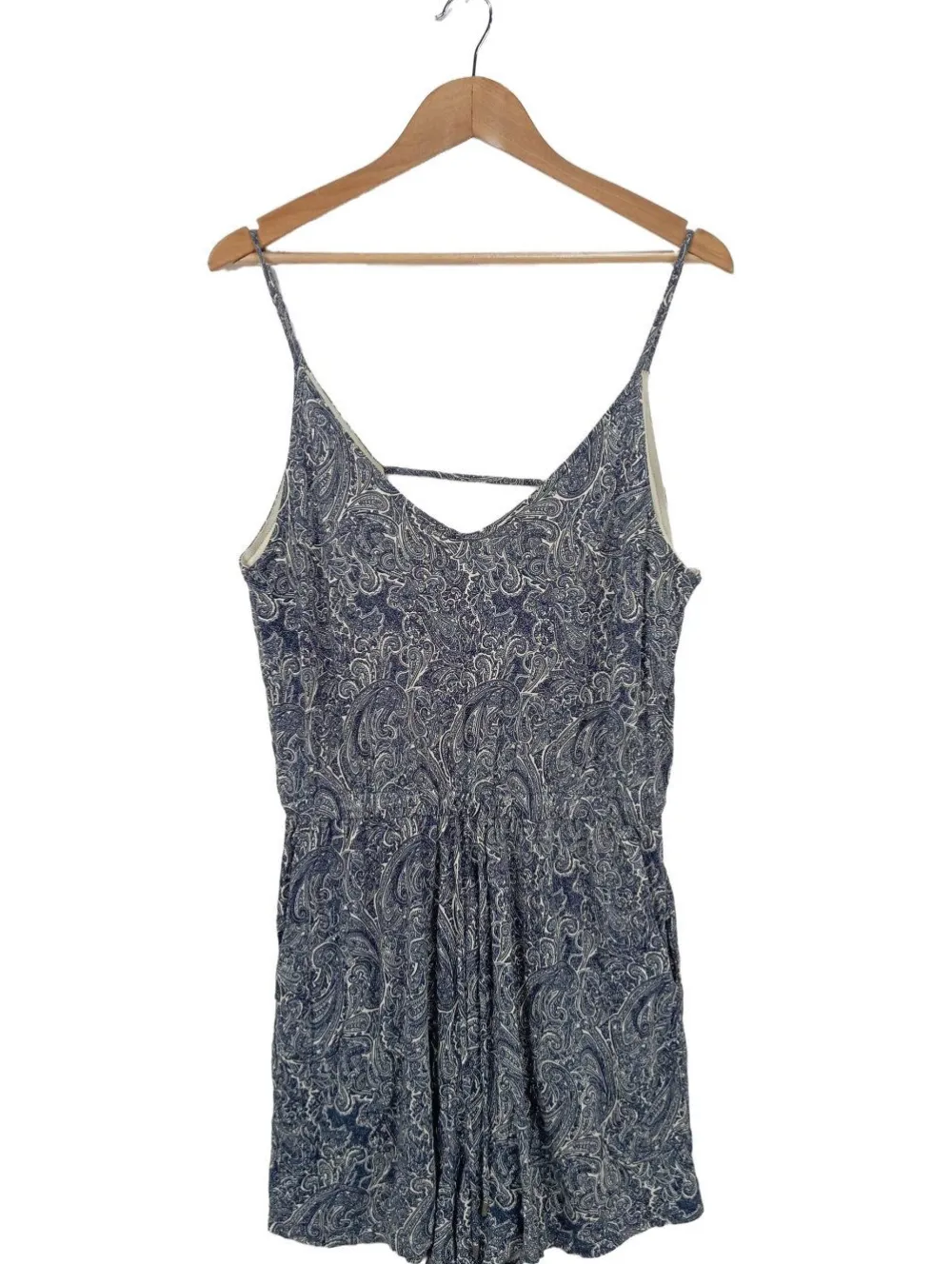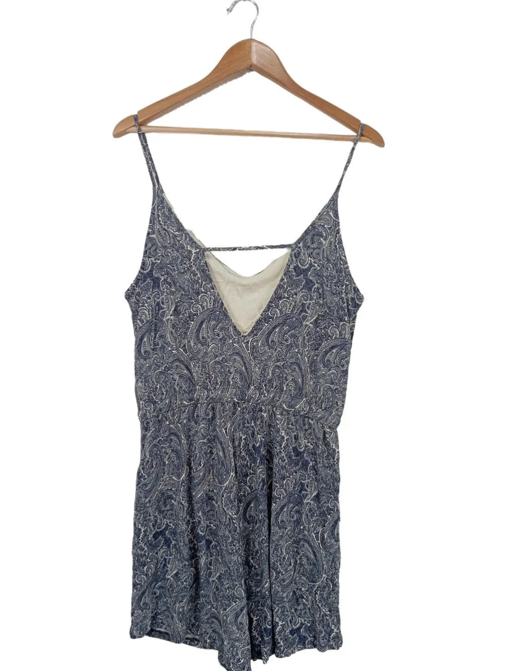 - H&M Basic Kurzer Jumpsuit, blau-weiß Allover-Druck