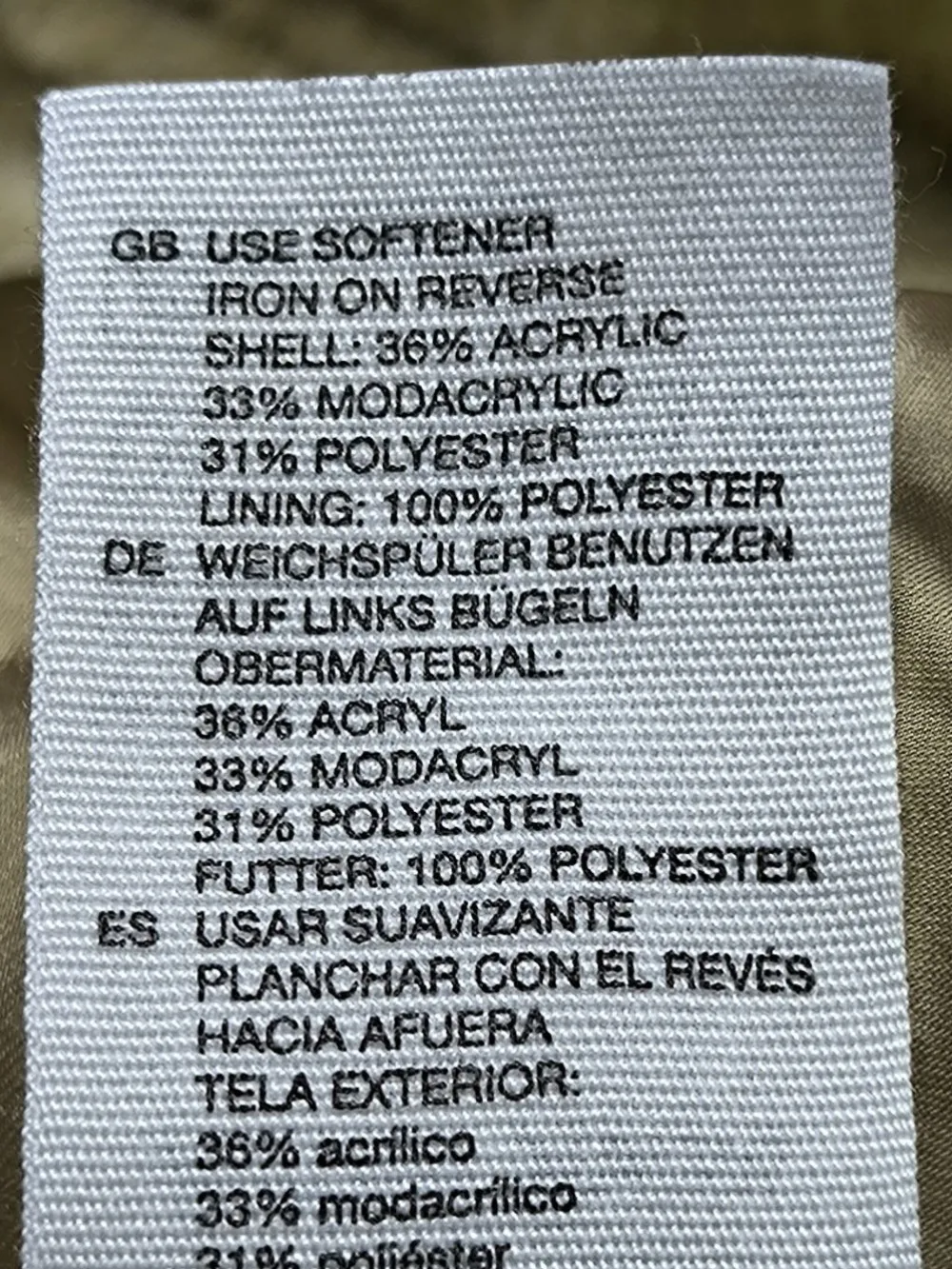 - Außenmaterial: 36% Polyacryl, 33% Modal, 31% Polyester