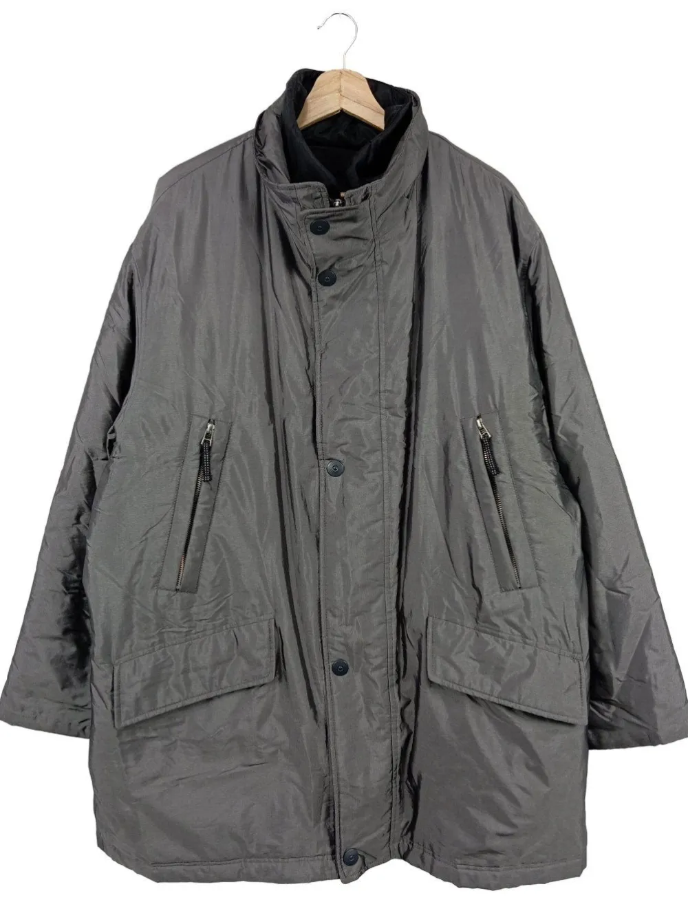 - hochgeschnittener Kragen, Ärmelriegel, verdeckter Reiß- und Druckknopfverschluss, Eingriffstaschen, Pattentaschen, Reißverschlusstaschen, Casual-Look, Street-Fashion-Look