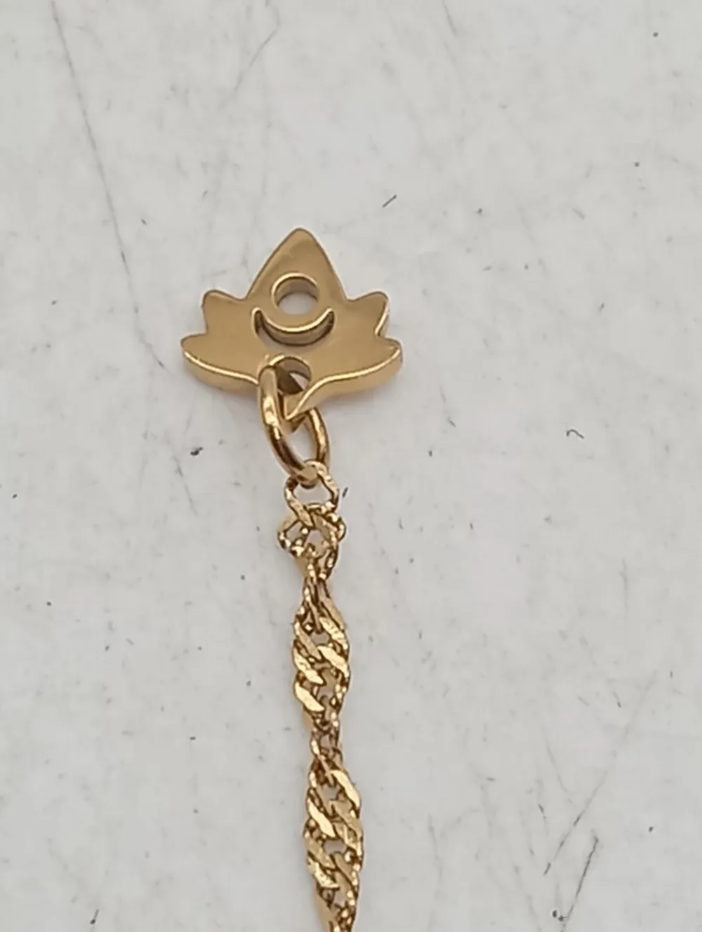 - Details: goldfarbiges Material, Ankerkettenglieder, feingliedrige Kette, kleine Anhänger, längenverstellbare Kette