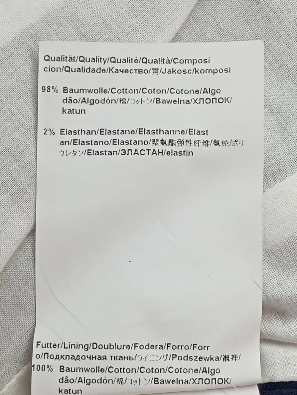 - Außenmaterial: 98% Baumwolle, 2% Elasthan