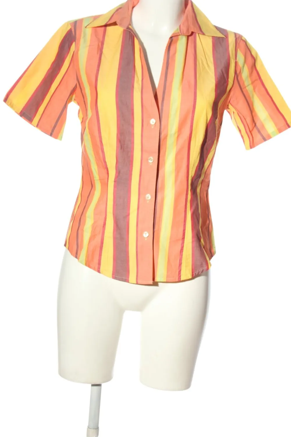 - V-Ausschnitt, Umlegekragen, Bund am Ärmelsaum, Knopfverschluss, Streifenmuster, Casual-Look, Elegant, Street-Fashion-Look