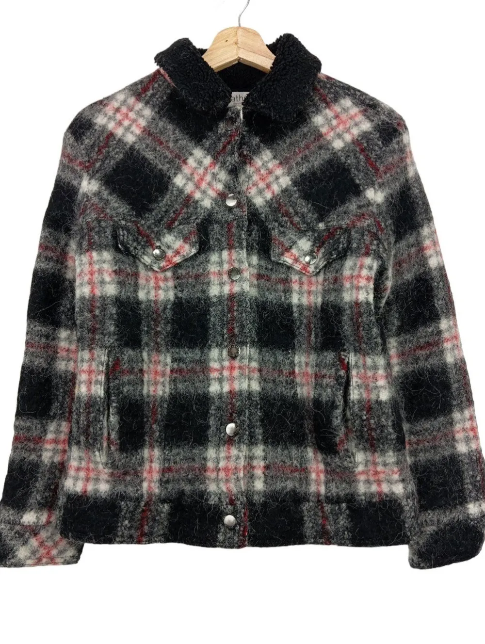 - Kunstfellkragen, Knopfverschluss am Ärmelsaum, Druckknopfverschluss, Leistentaschen, Pattentaschen, Taschen mit Druckknopfverschluss, Karomuster, Casual-Look, Street-Fashion-Look