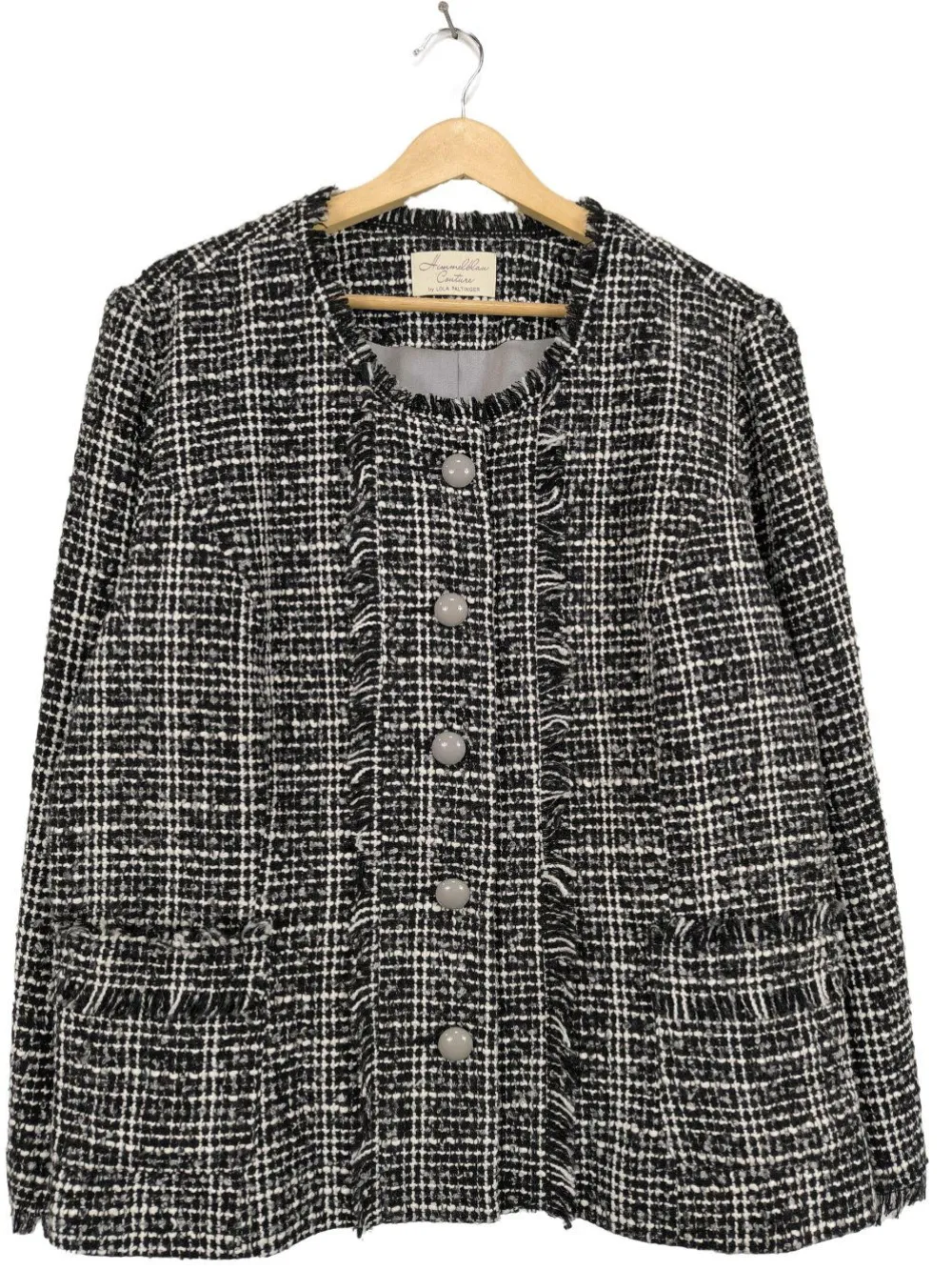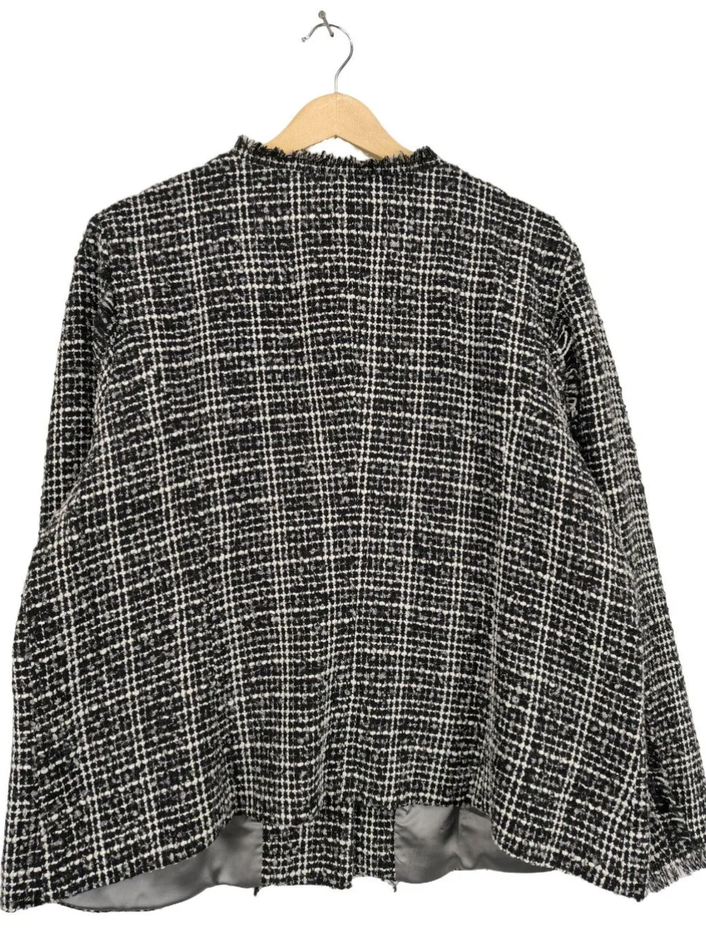 - Rundhalsausschnitt, offene Kanten am Ärmelsaum, Knopfverschluss, aufgesetzte Taschen, Karomuster, Casual-Look, Elegant, Vintage-Look
