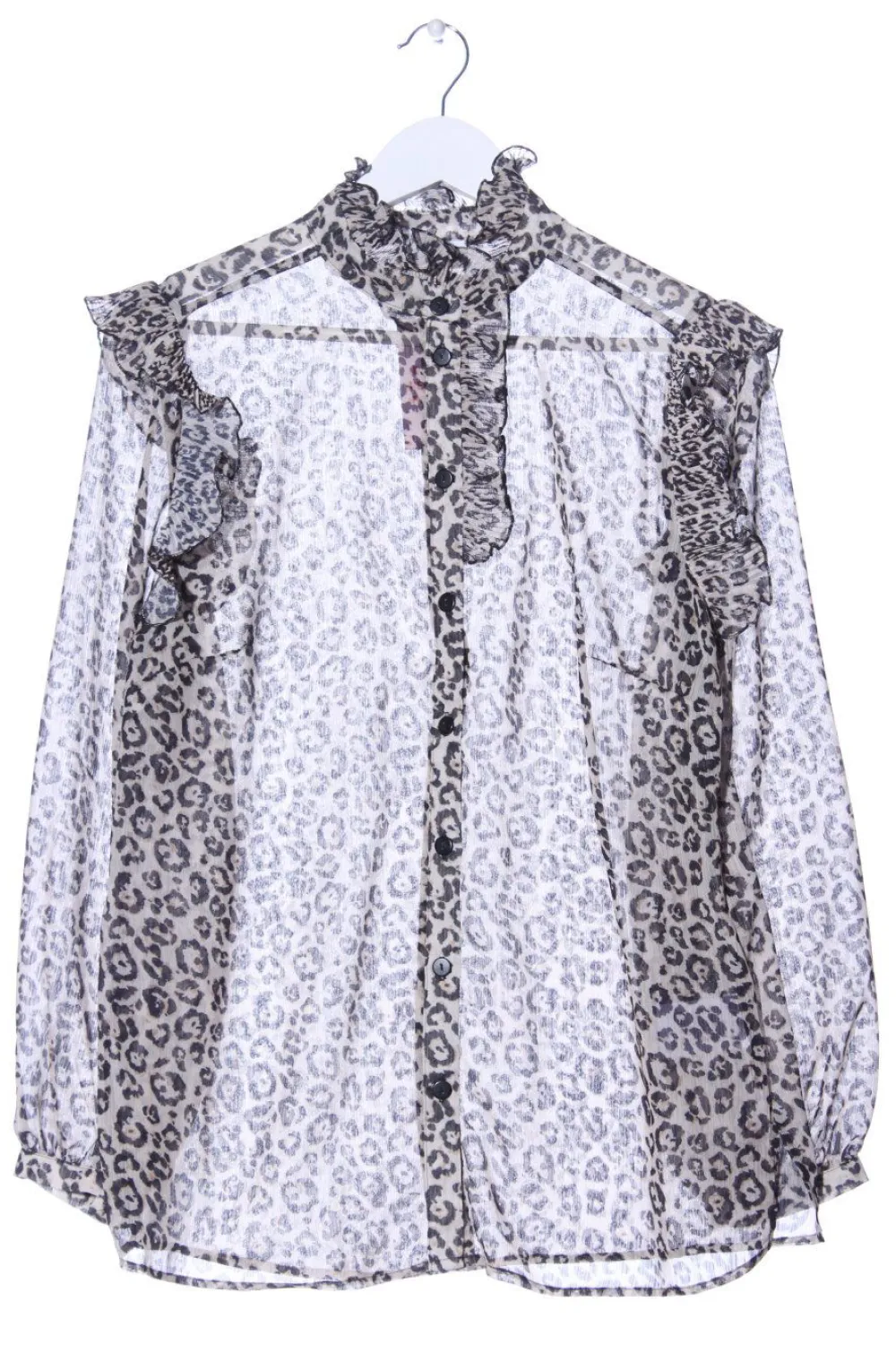 - Rüschenkragen, Knopfverschluss am Ärmelsaum, Knopfverschluss, Allover-Druck, Mustermix, Webmuster, Casual-Look, Street-Fashion-Look, Transparenz-Optik