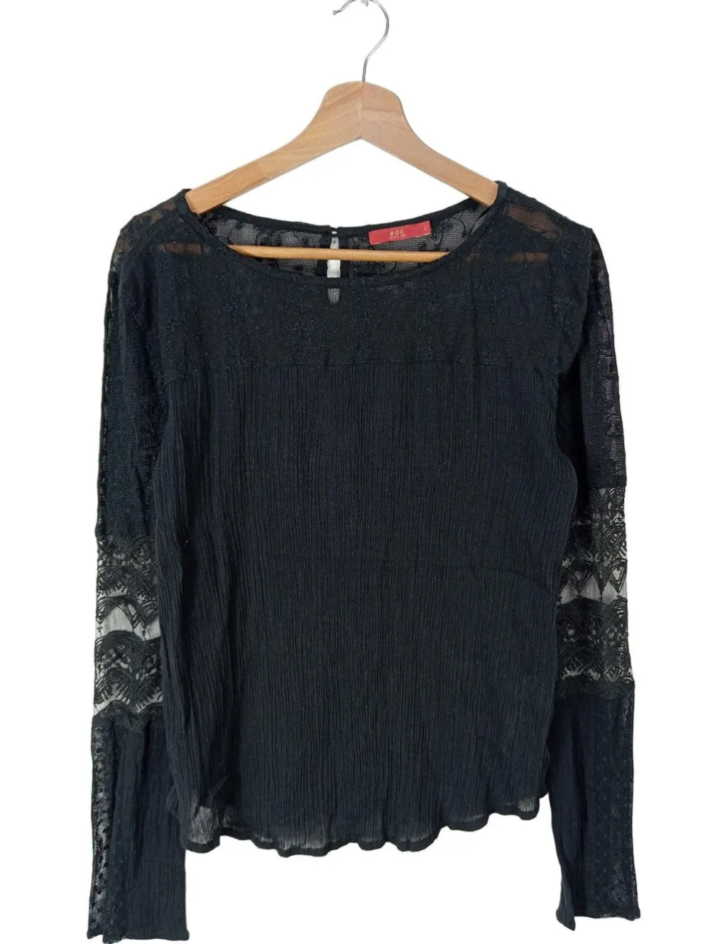 - edc Langarm-Bluse, schwarz
