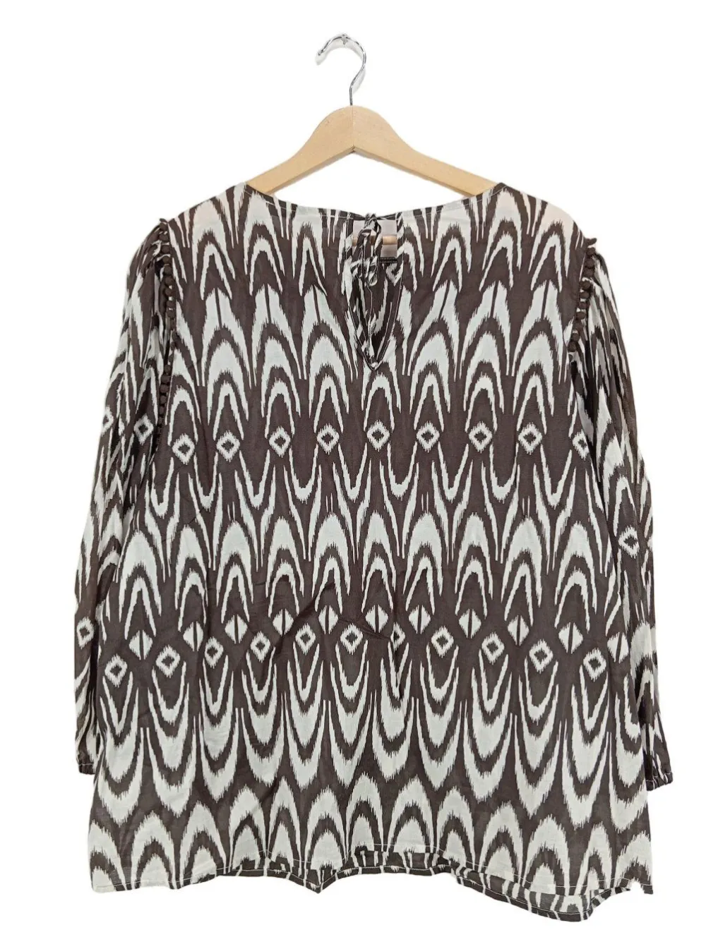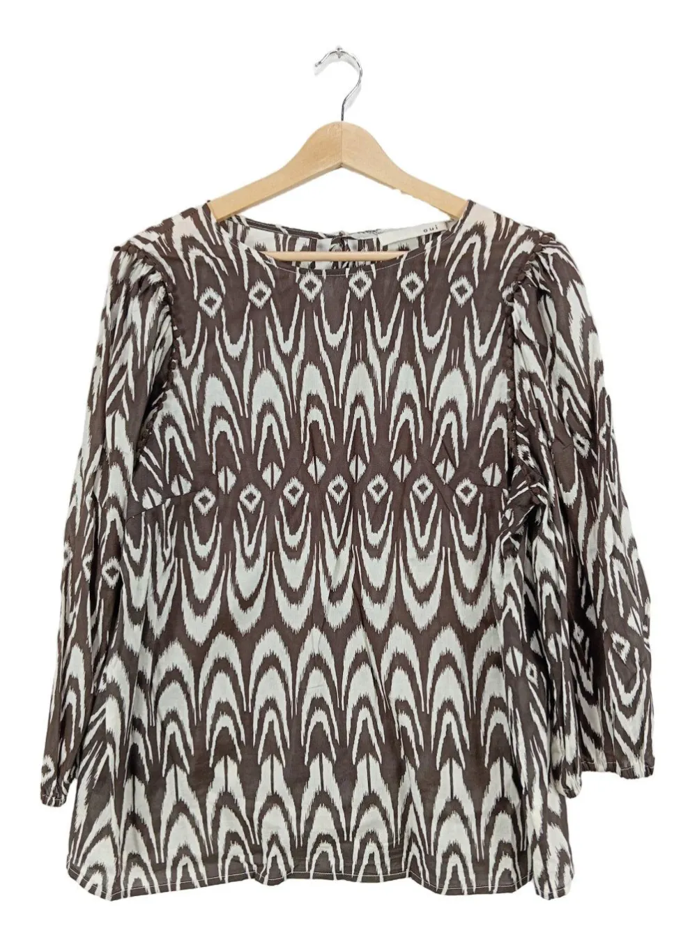 - Oui Langarm-Bluse, braun-weiß abstraktes Muster