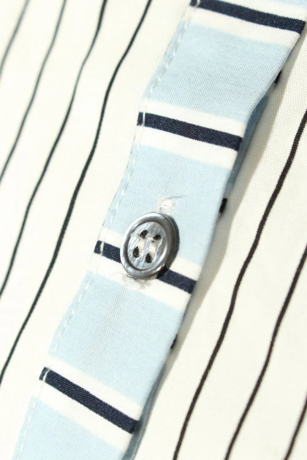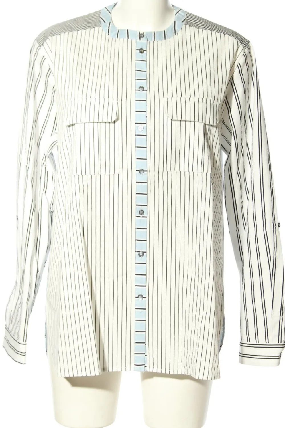 - Rundhalsausschnitt, Knopfverschluss am Ärmelsaum, Knopfverschluss, aufgesetzte Pattentaschen, Streifenmuster, Casual-Look, Vintage-Look