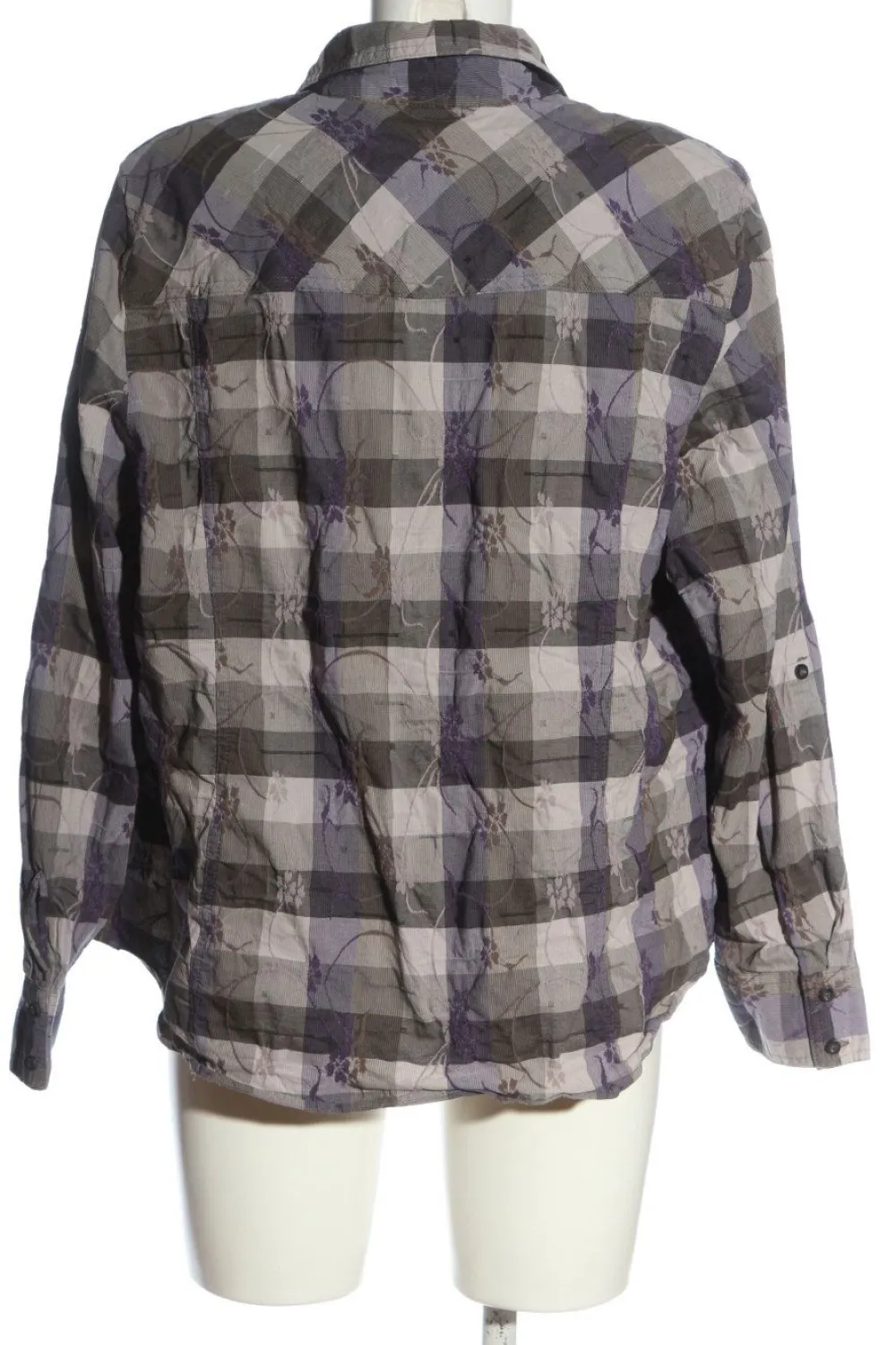 - V-Ausschnitt, Kelchkragen, Hemdärmelschlitz, Knopfverschluss, aufgesetzte Pattentaschen, Taschen mit Knopfverschluss, Allover-Druck, Blumenmuster, Karomuster, Business-Look, klassischer Stil