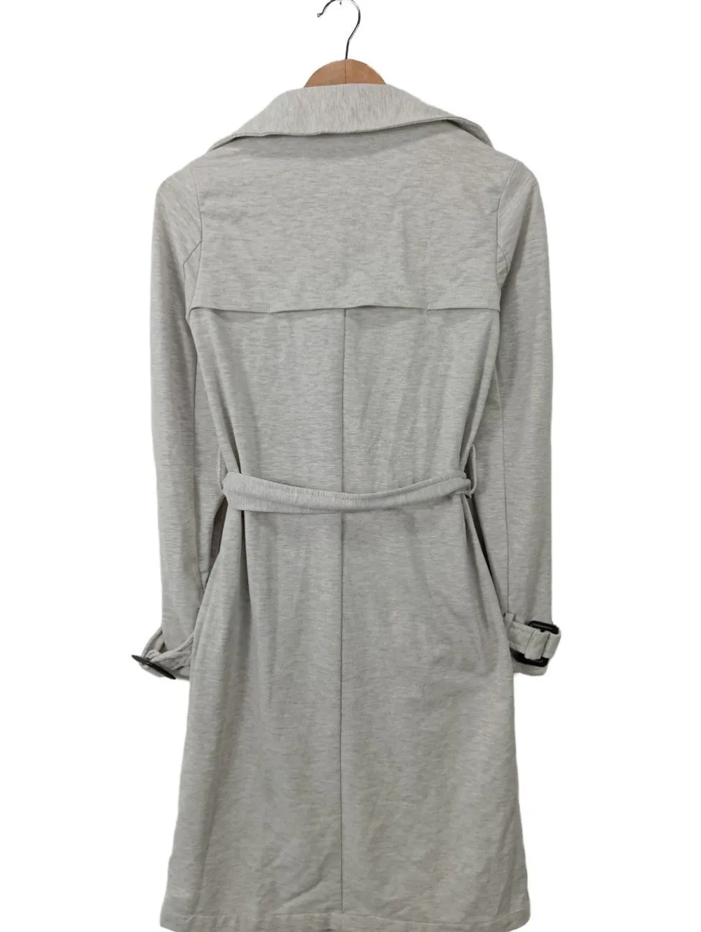 - V-Ausschnitt, Reverskragen, Ärmelriegel, doppelreihiger Knopfverschluss, Knopfverschluss, Knotenverschluss, Leistentaschen, meliert, klassischer Stil, Street-Fashion-Look