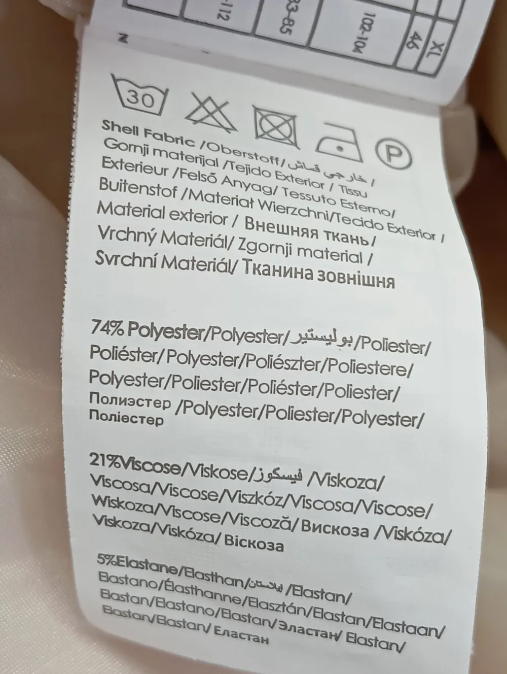 - Außenmaterial: 75% Polyester, 21% Viskose, 5% Elasthan
