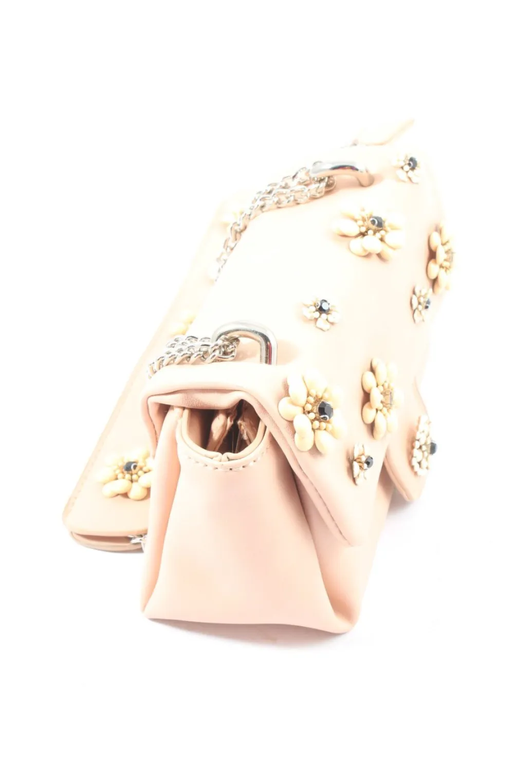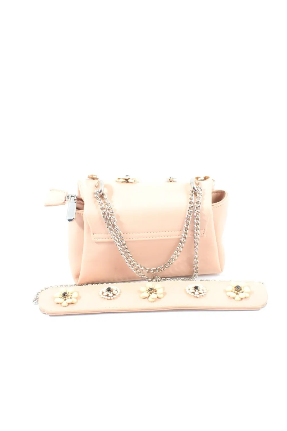 - Details: silberfarbene Hardware, Schulterriemen, Tragekette, Metallelemente, Plastikelemente, Ringelemente, Schmucksteinverzierung, Ziernähte