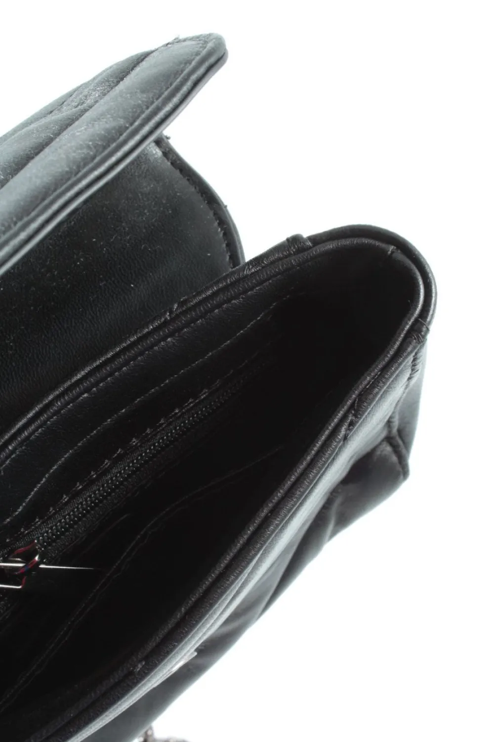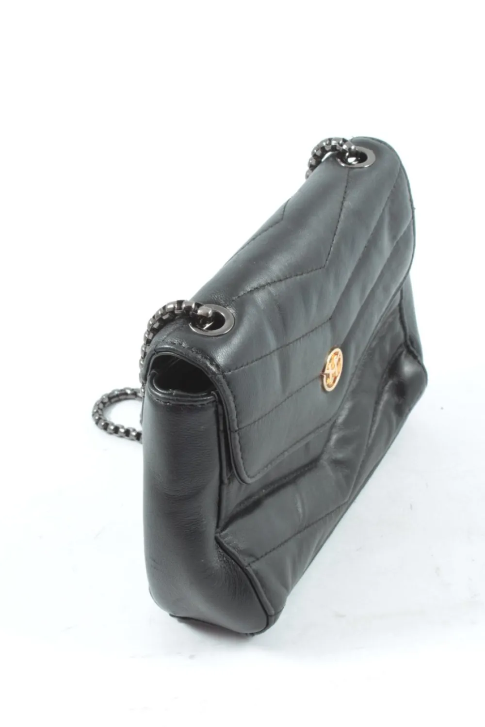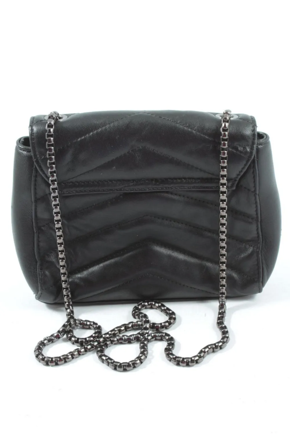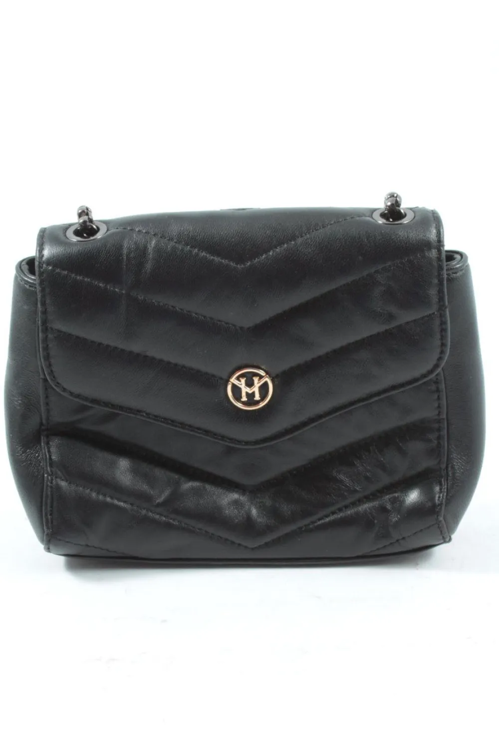- Details: schwarze Hardware, Tragekette, Logo-Applikation aus Metall, Steppungen, Ösenelemente