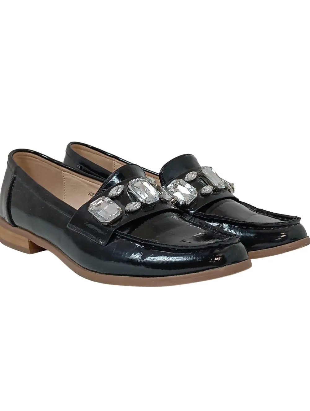 - glatte Laufsohle, runde Schuhspitze, Schlupfeinstieg, Glanz-Optik, Vintage-Look