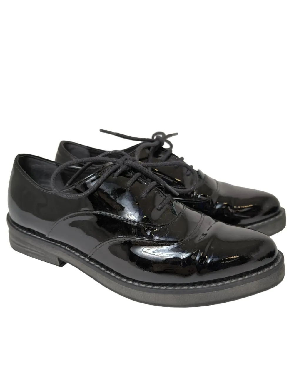 - genoppte Laufsohle, runde Schuhspitze, Derby-Schnürung, Casual-Look, Glanz-Optik, Street-Fashion-Look