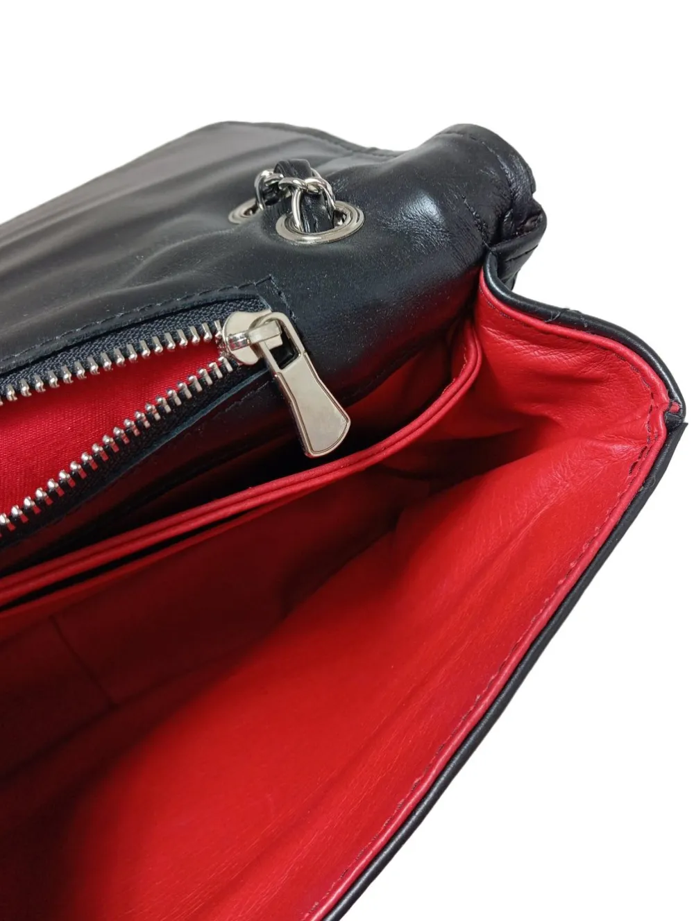 - Details: goldfarbene Hardware, Standfüßchen, Tragekette, Reißverschlussinnenfach, verschließbares Innenfach