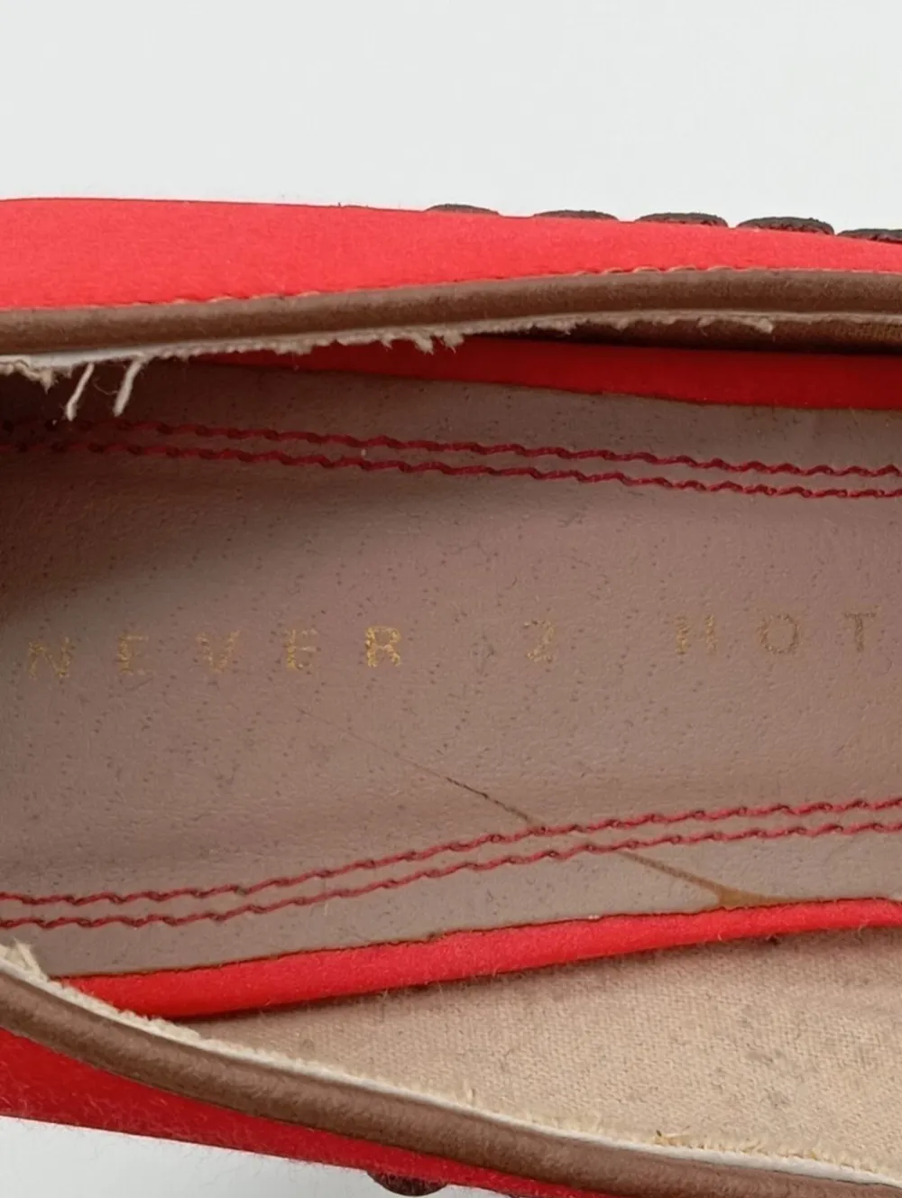 - Never 2 Hot Hochfront-Pumps, rot-braun Streifenmuster