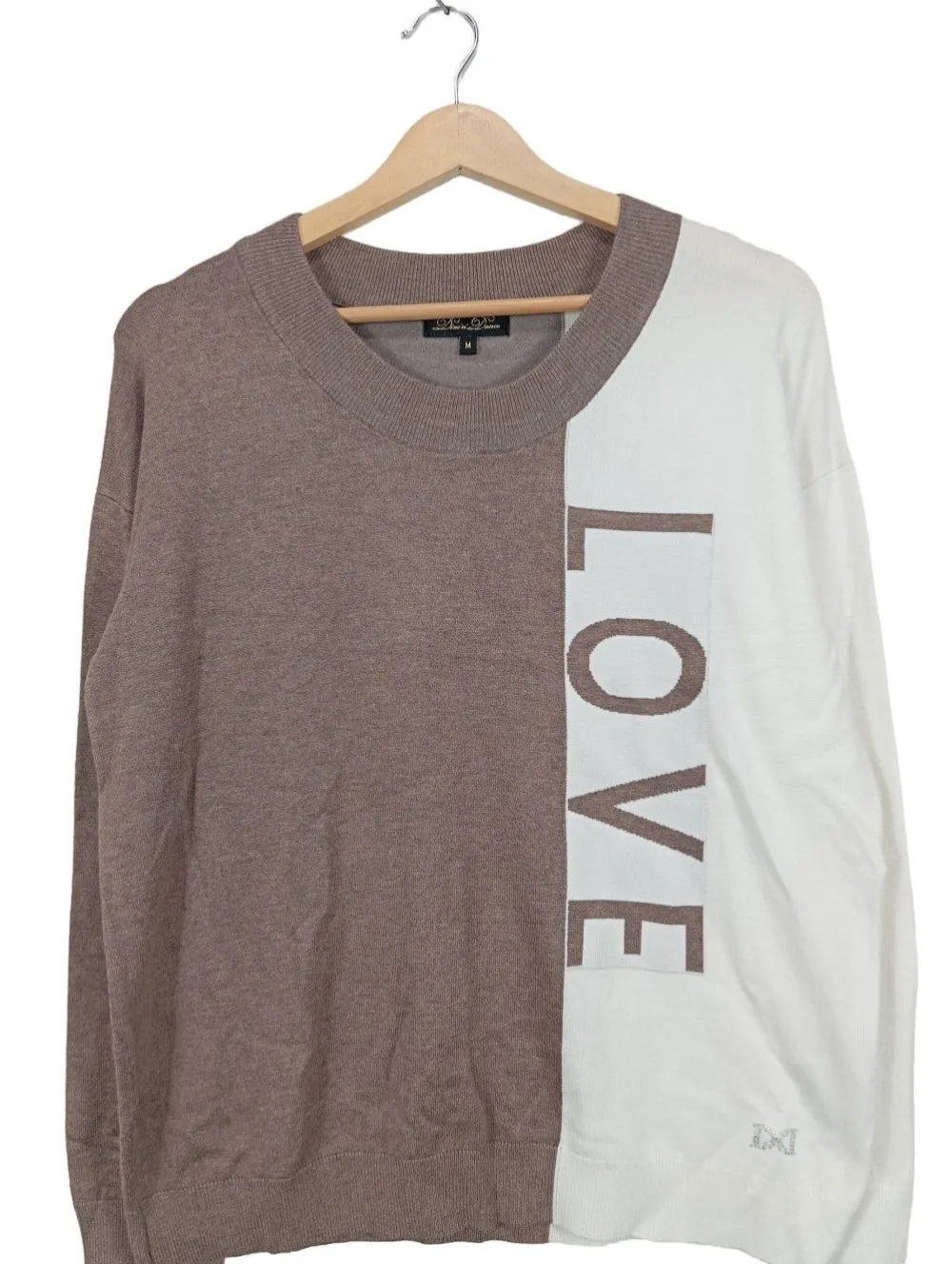 - Dine ’n‘ Dance Rundhalspullover, braun-weiß Schriftzug gedruckt