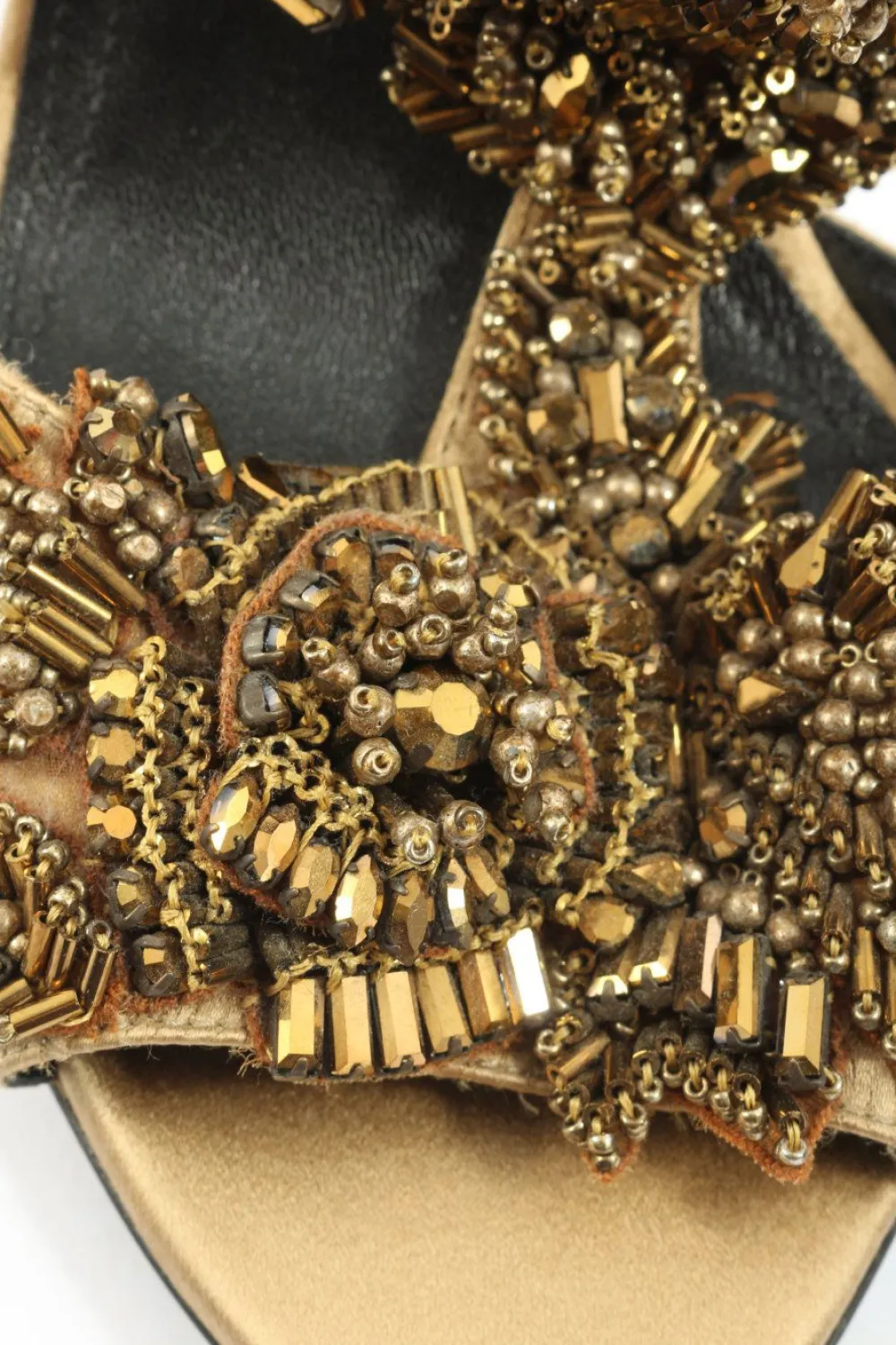 - Details: gepolstertes Fußbett, Riemchen, Teilungsnähte, Ziernähte, Perlenverzierung