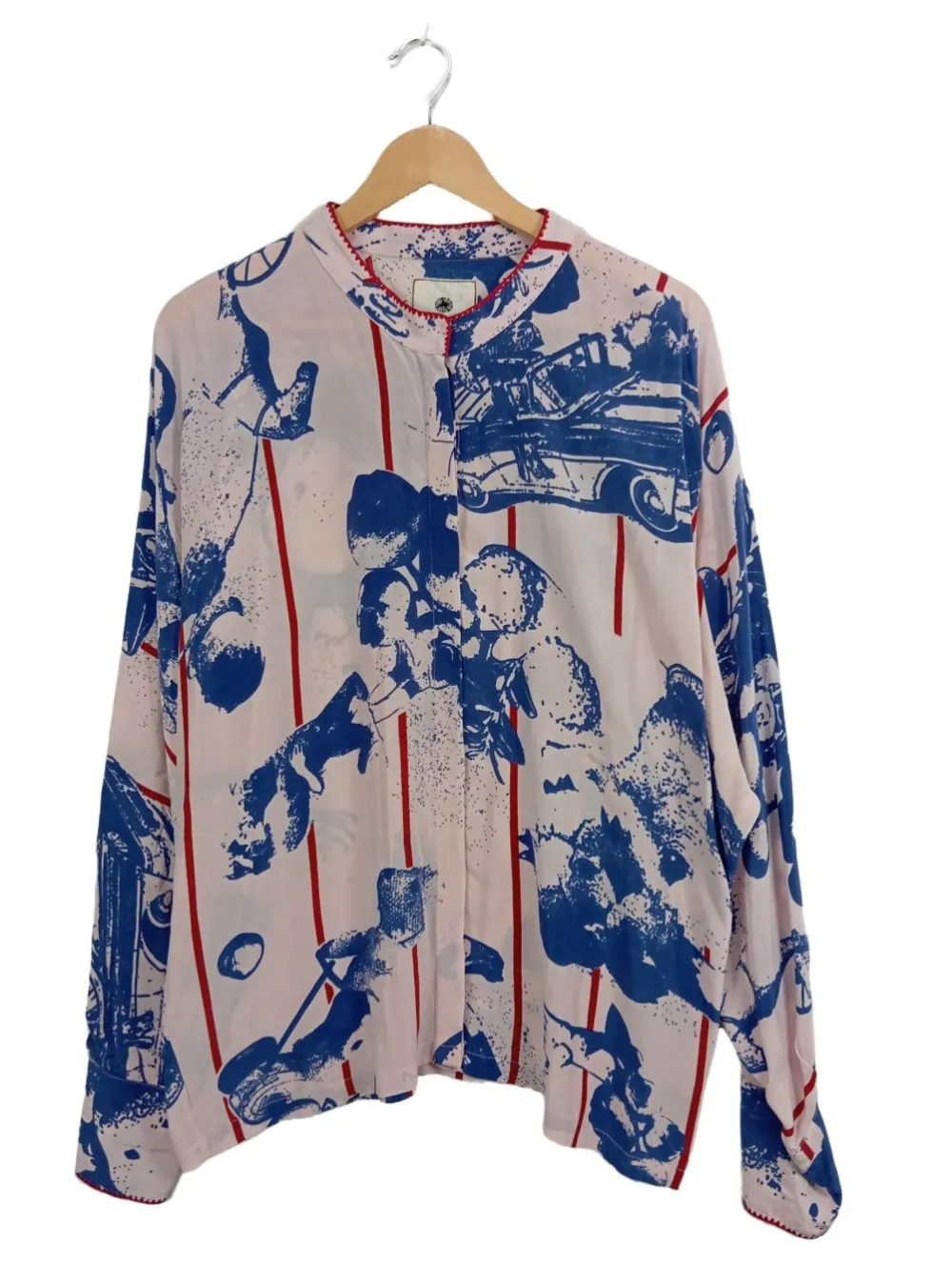 - Rundhalsausschnitt, angeschnittener Kragen, Knopfverschluss am Ärmelsaum, Allover-Druck, Motivdruck, Casual-Look