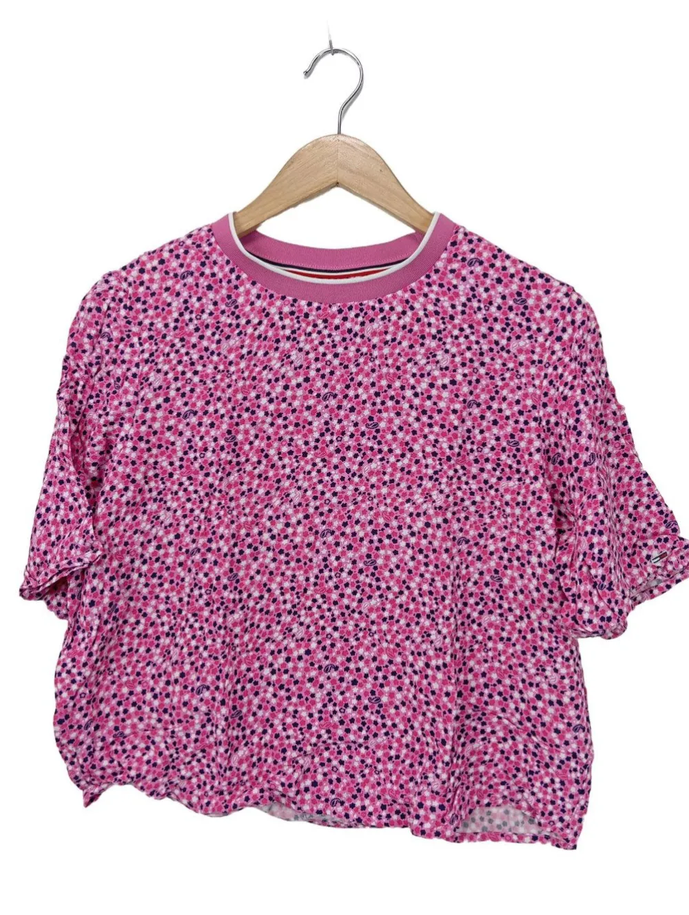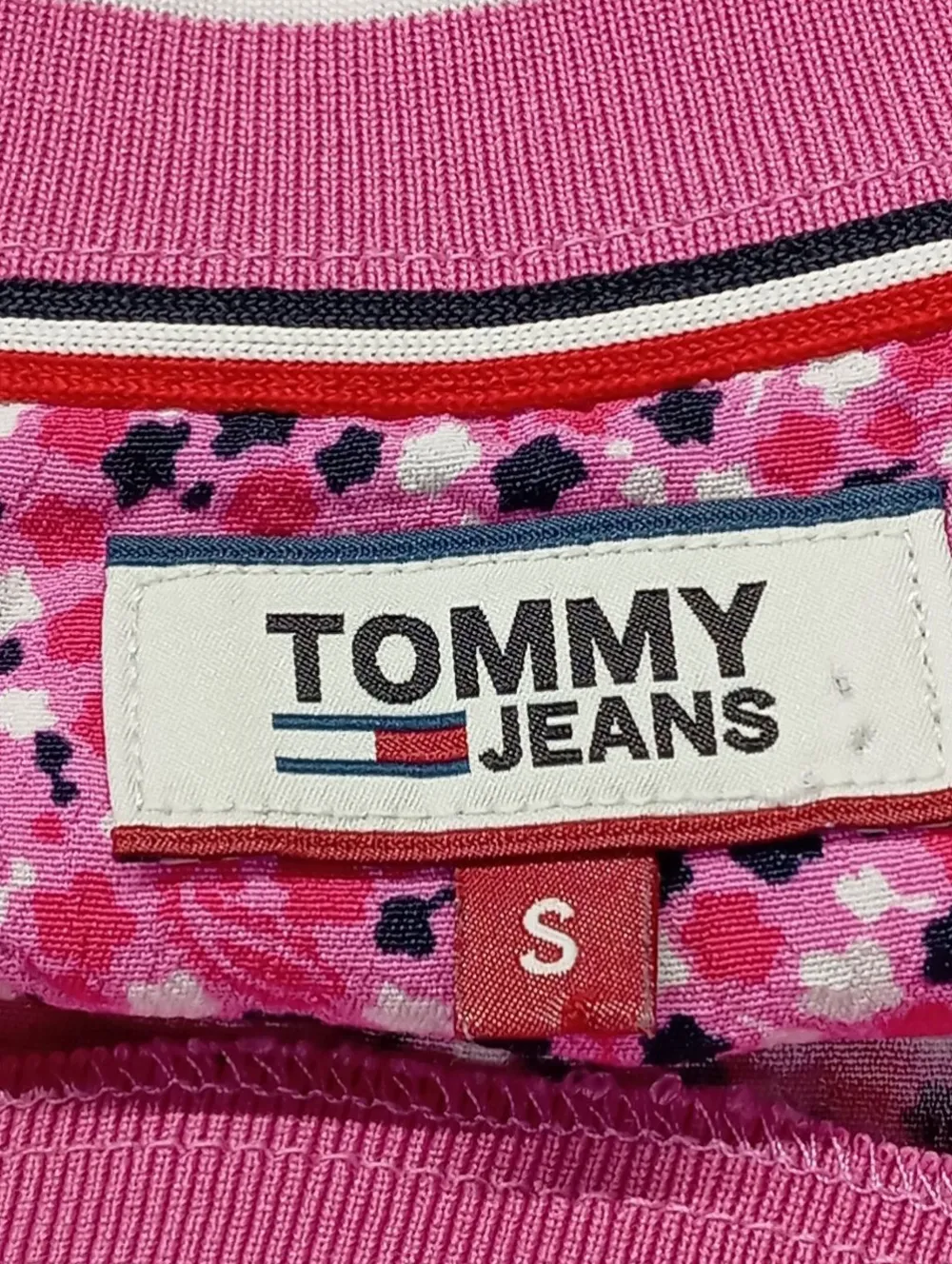 - Tommy Jeans Cropped Shirt, pink-schwarz Allover-Druck