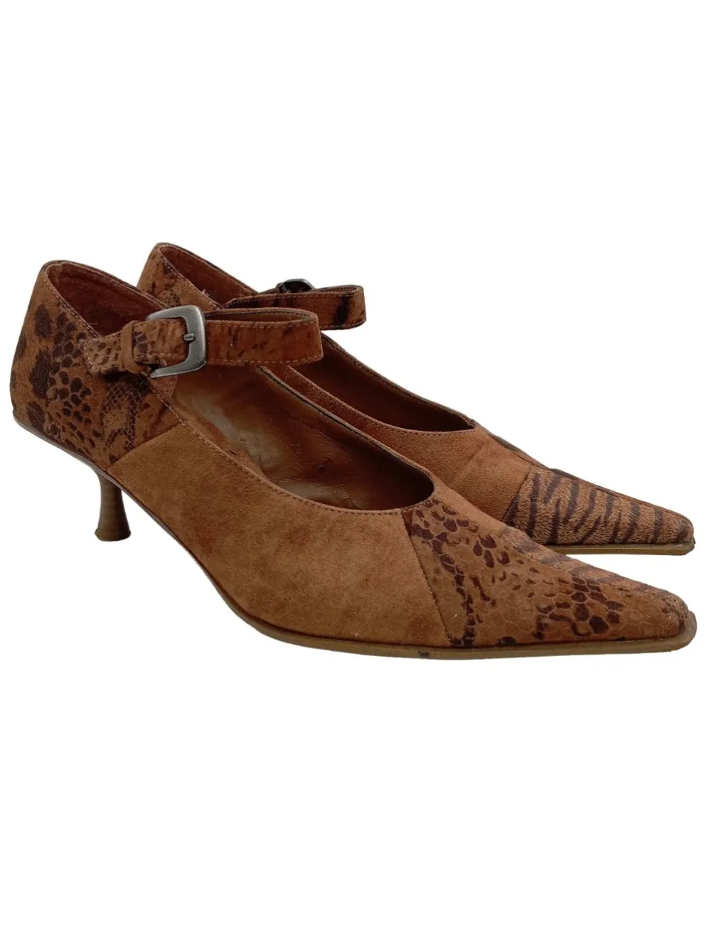 - N2H Spitz-Pumps, braun Allover-Druck