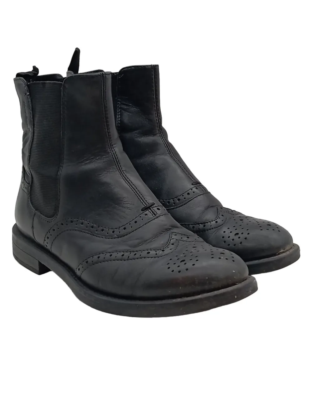 - Details: Teilungsnähte, Zierlochung, Zuglasche an der Ferse für leichtes Anziehen
