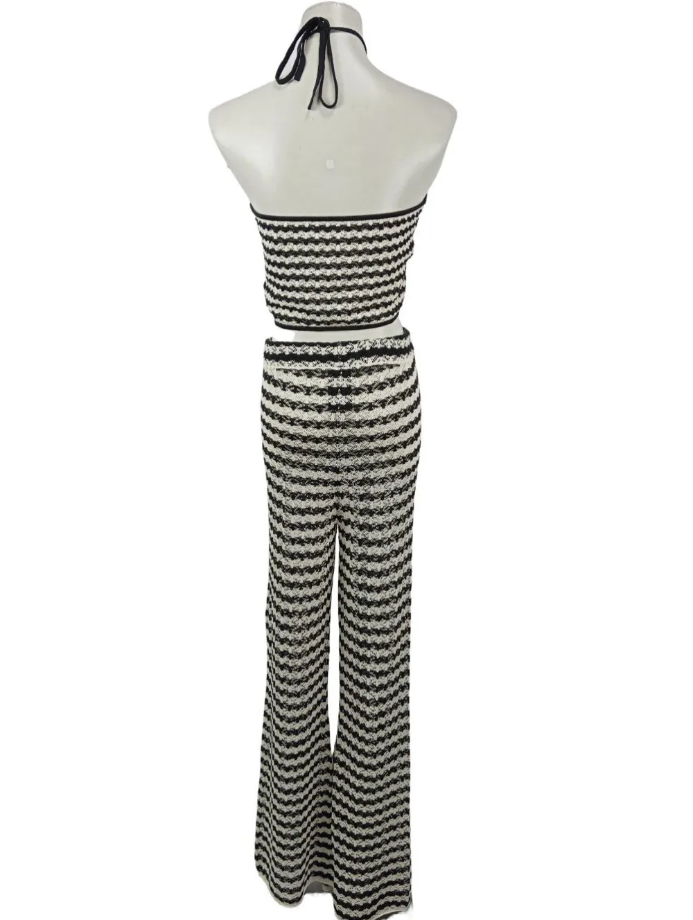 - H&M Strick Twin Set, schwarz-weiß Streifenmuster