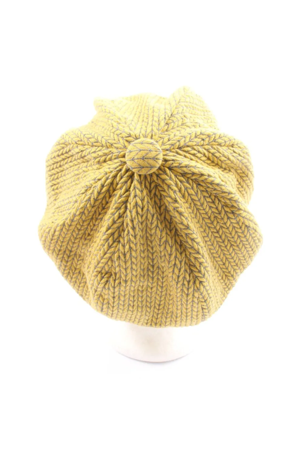 - Strickmütze, blassgelb-hellgrau grafisches Muster
