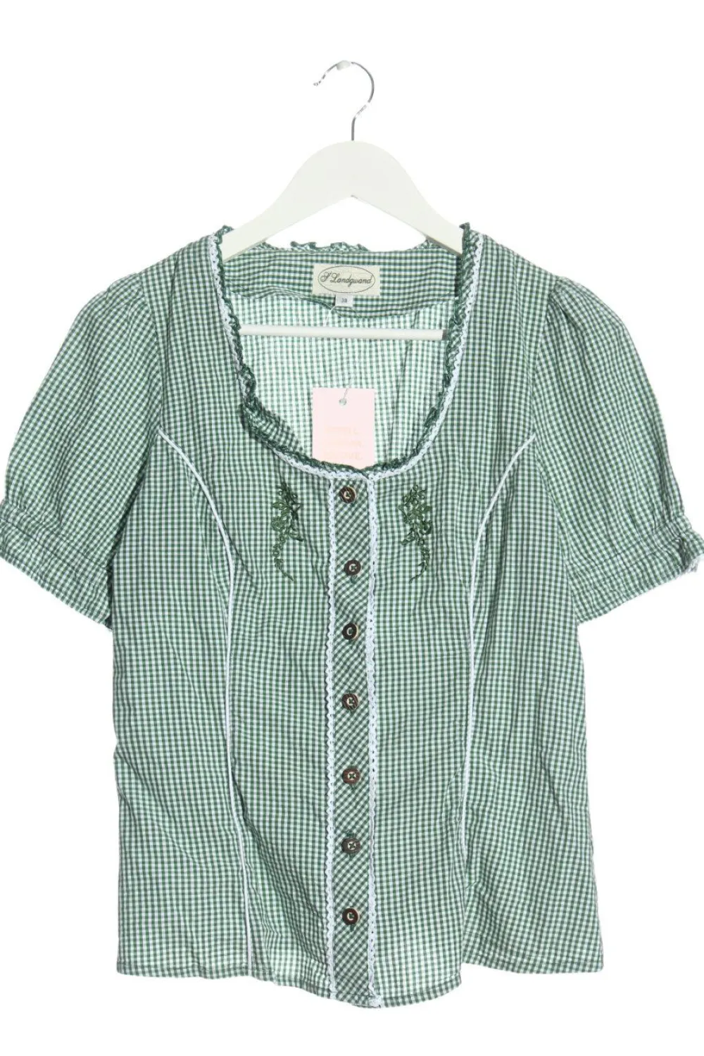 - S’Landgwand Trachtenbluse, grün-weiß Karomuster
