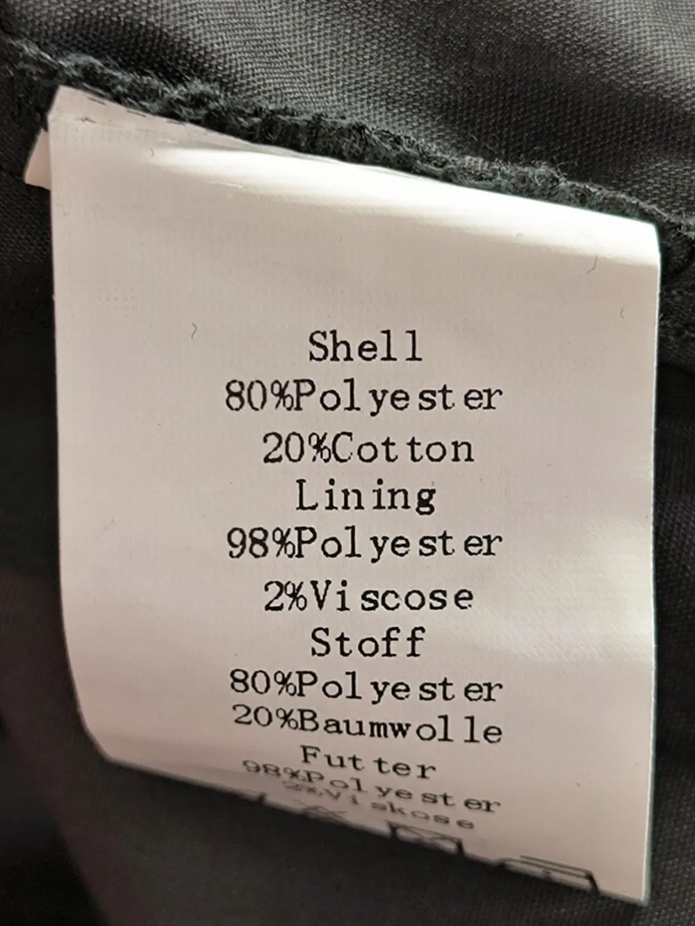 - Außenmaterial: 80% Polyester, 20% Baumwolle