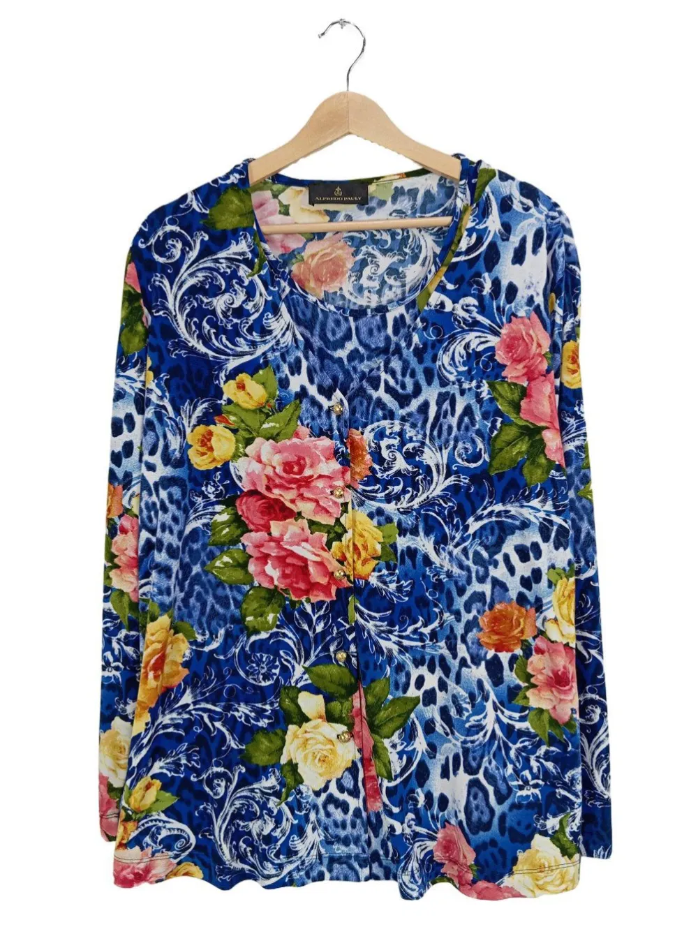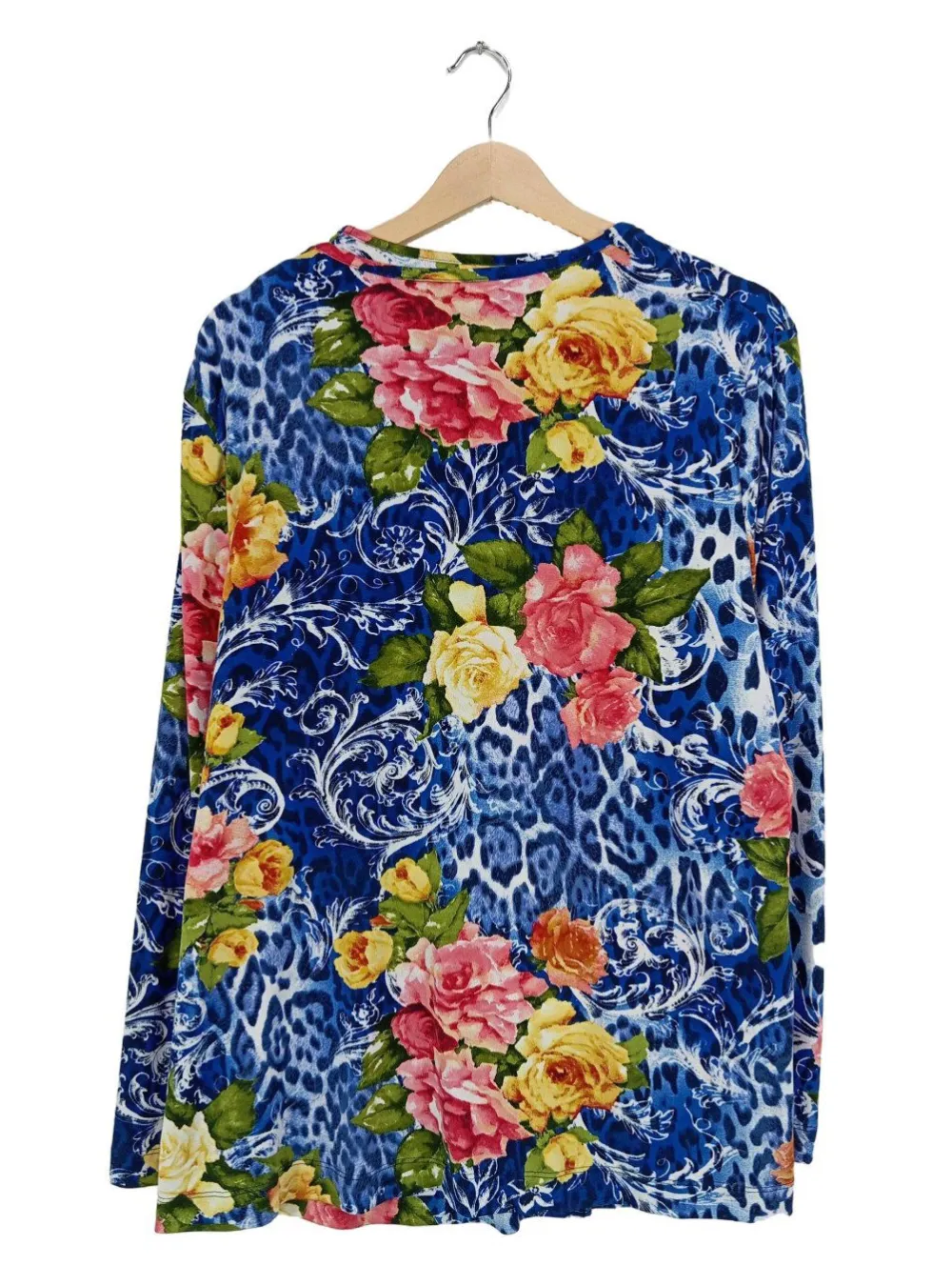 - Rundhalsausschnitt, V-Ausschnitt, Bund am Ärmelsaum, Knopfverschluss, Allover-Druck, Blumenmuster, Leomuster, Casual-Look