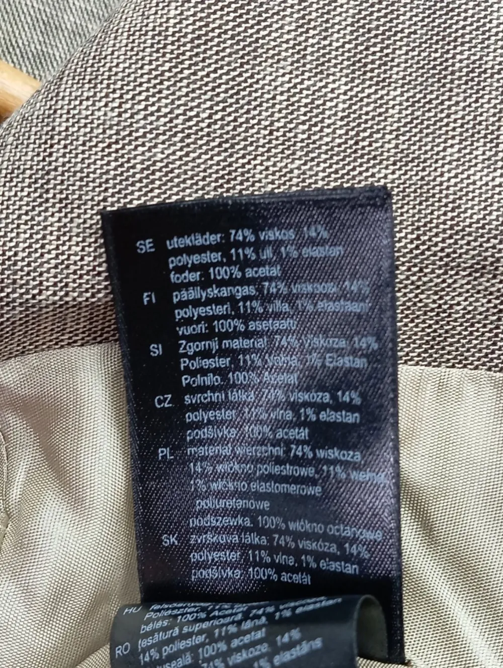 - Außenmaterial: 74% Viskose, 14% Polyester, 11% keine Textilangabe, 1% Elasthan