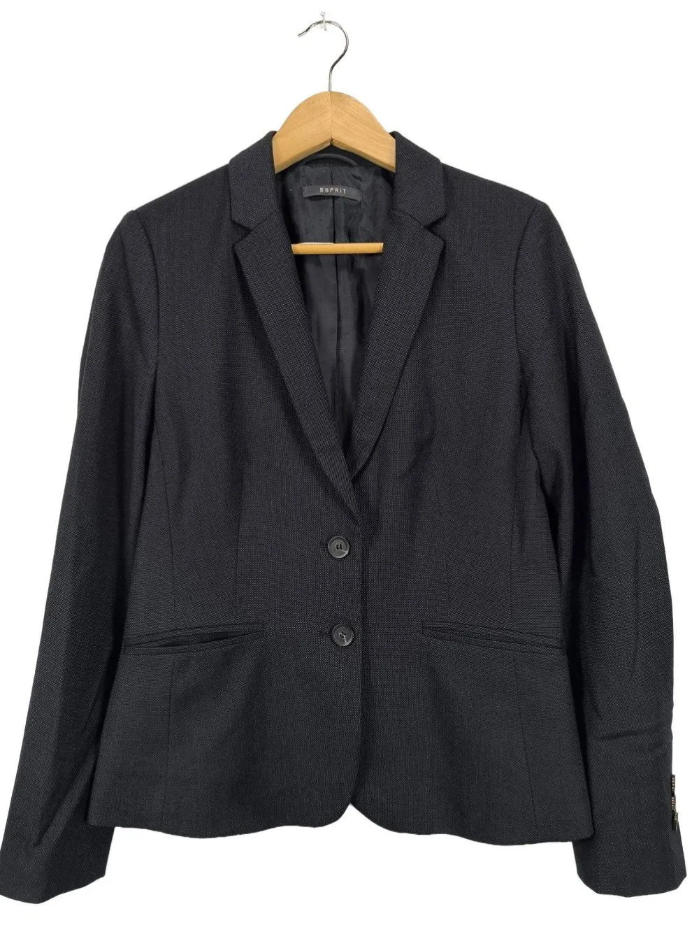 - V-Ausschnitt, Umlegekragen, Schlitz am Ärmelsaum, Knopfverschluss, Eingriffstaschen, Paspeltaschen, Business-Look, klassischer Stil
