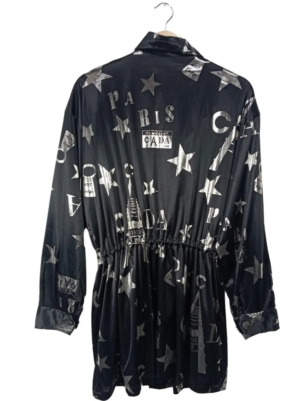 - Stehkragen, Knopfverschluss am Ärmelsaum, verdeckter Reißverschluss, Leistentaschen, Allover-Druck, Motivdruck, Casual-Look, Glanz-Optik, Street-Fashion-Look