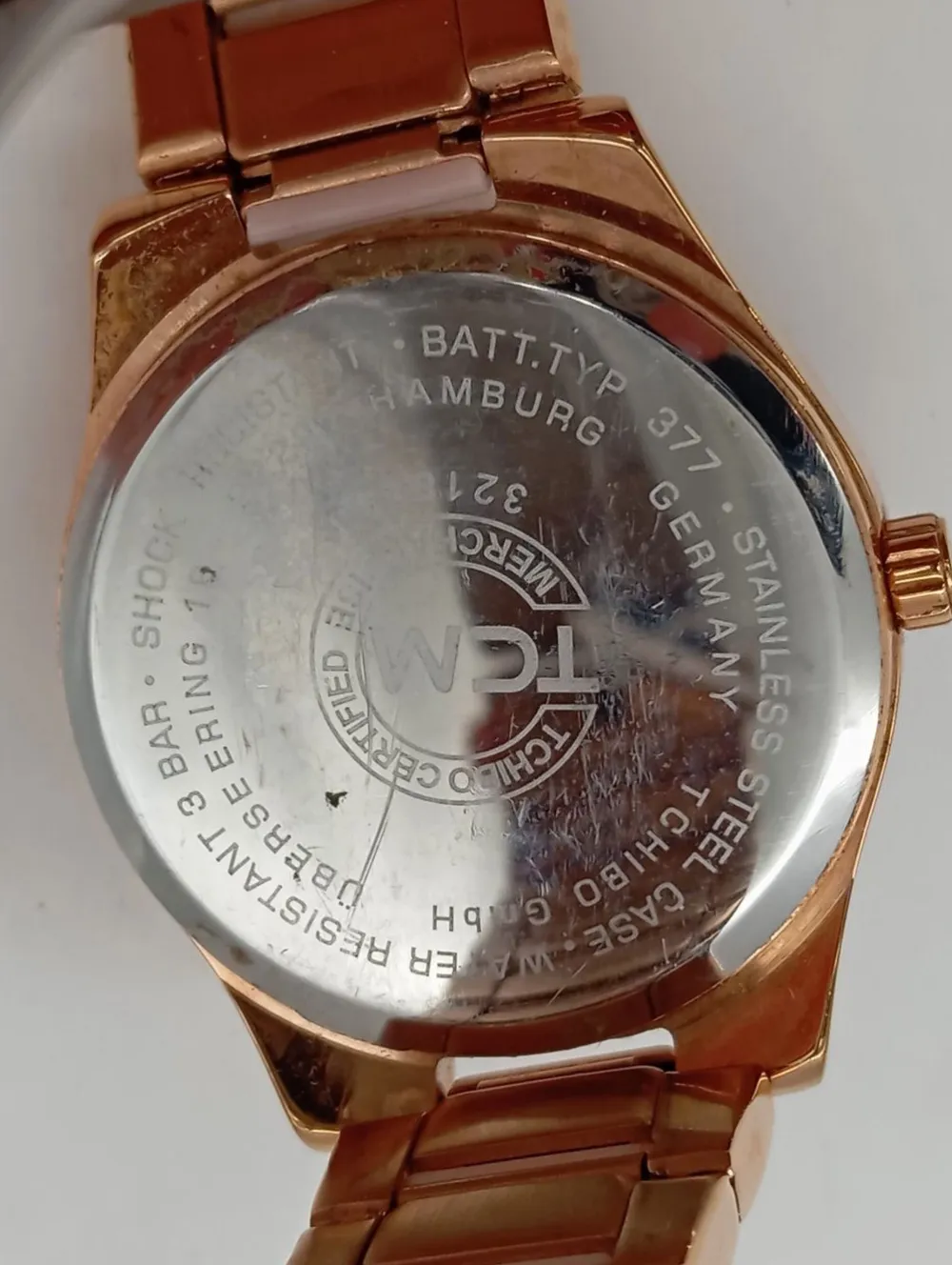 - Tchibo / TCM Analoguhr, goldfarben-pink