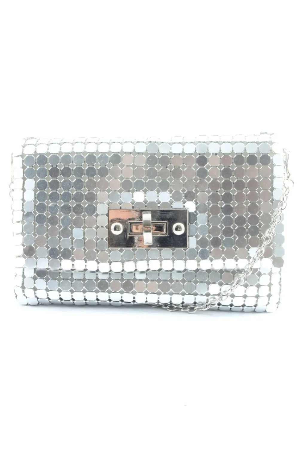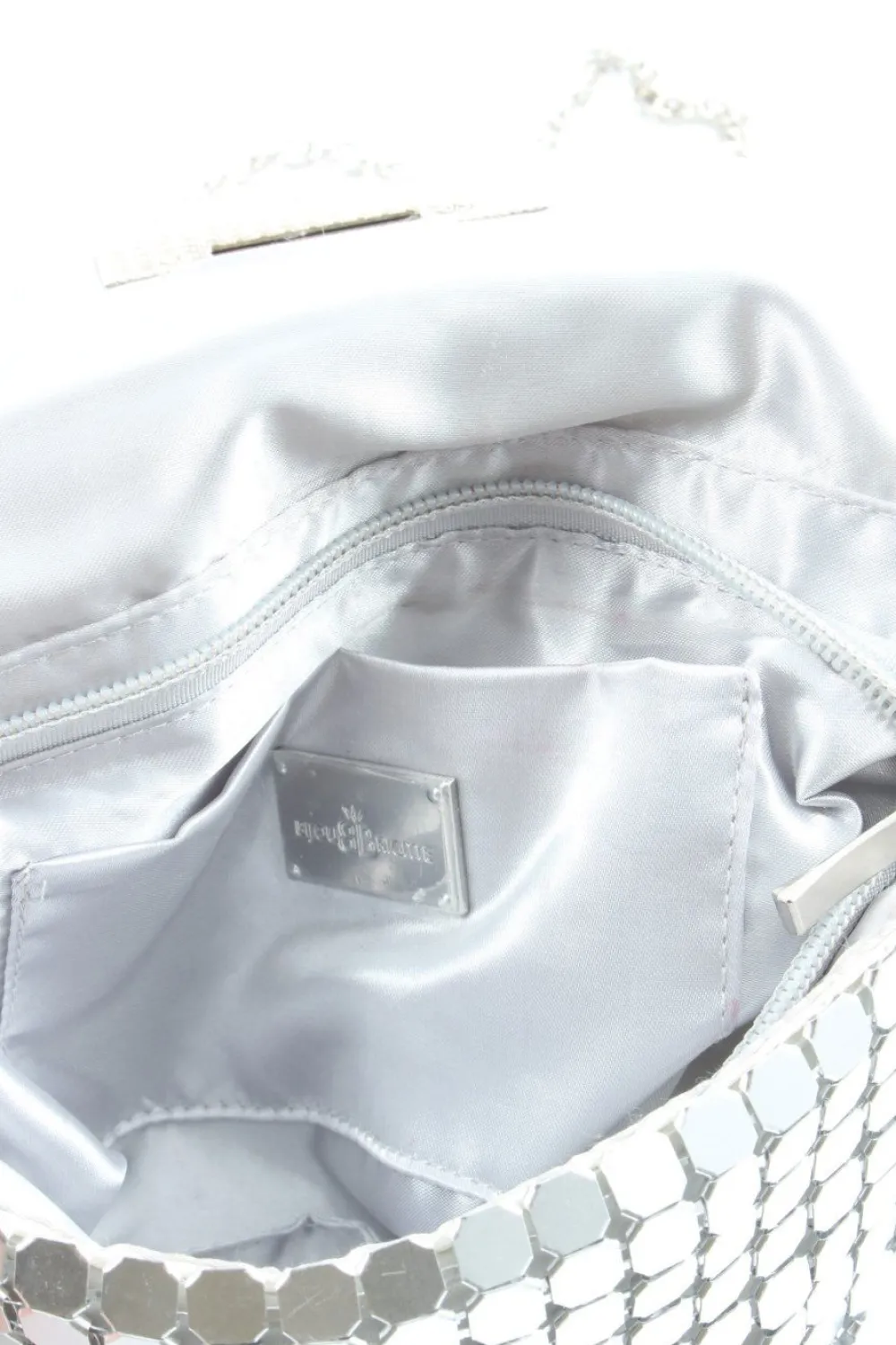 - Details: silberfarbene Hardware, Tragekette, Logo-Applikation, gemustertes Futter